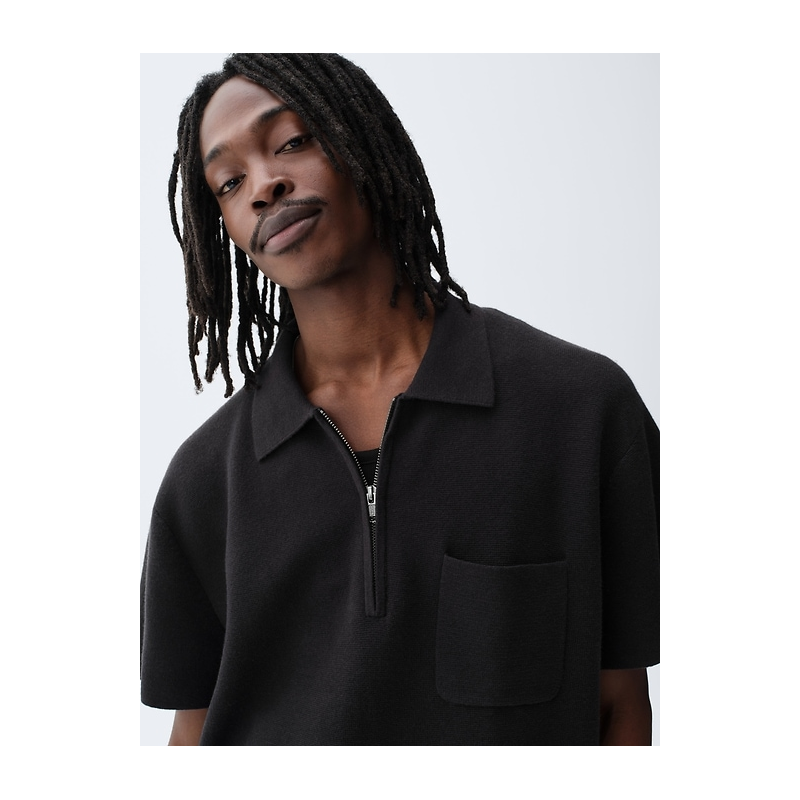 - Soft sweater knit polo shirt in an oversized fit.