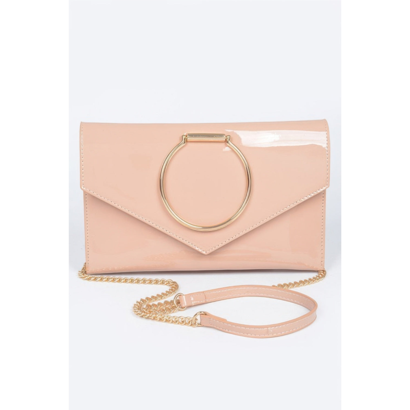 Chic and contemporary, the Enamel Faux Leather Metal Handle Flap Clutch is the ultimate accessory for polished evenings out. Crafted from glossy faux leather, this sleek clutch features an envelopekorea flap and a bold metal ring handle that doubles as a striking design detail and practical grip. A detachable chain strap allows for hands-free styling when needed. With its structured silhouette and modern finish, this piece brings an elevated edge to both formal and cocktail attire. Designed to balance fashion-forward aesthetics with everyday functionality, it’s a must-have for your evening collection.