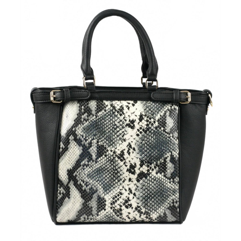 Casually cute and the perfect complement to any day dress.Discover the Women''s Aviana Satchel Bag by Urban Expressions, a chic accessory in black with standout features. Crafted from pebbled vegan leather, this satchel includes a stylish snake print front panel and buckle details. It offers a top zip closure and practical compartments like a back zip pocket and fabric-lined interior with two slip pockets and one zip pocket. With a handle drop of 5.5 inches and a detachable, adjustable shoulder strap ranging from 21 to 26 inches, this bag blends functionality with fashion flawlessly.