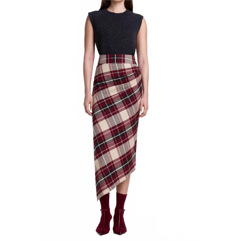 [US] Smythe asymmetrical midi skirt in plaid