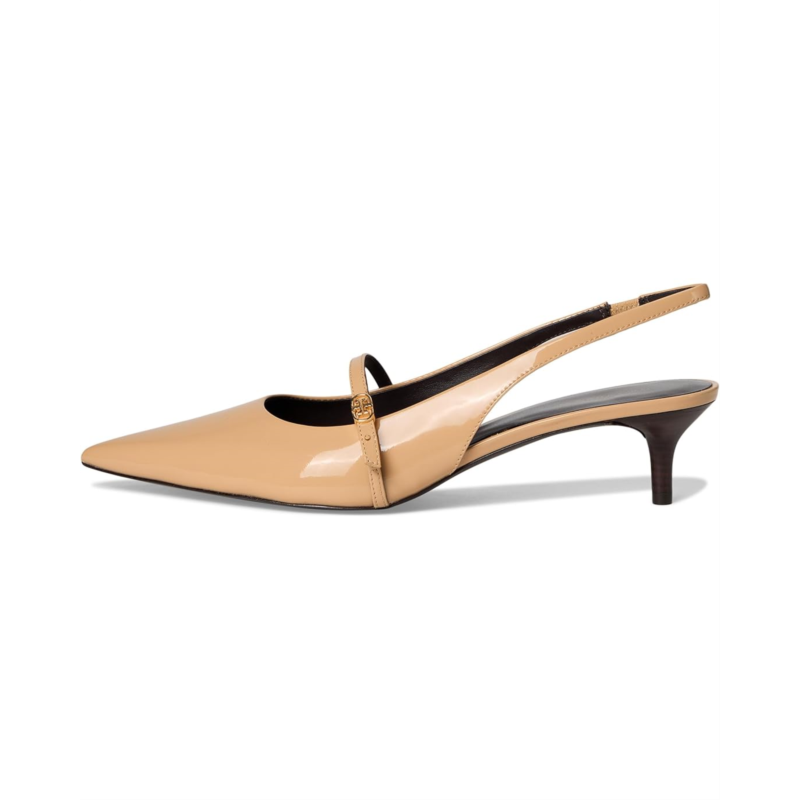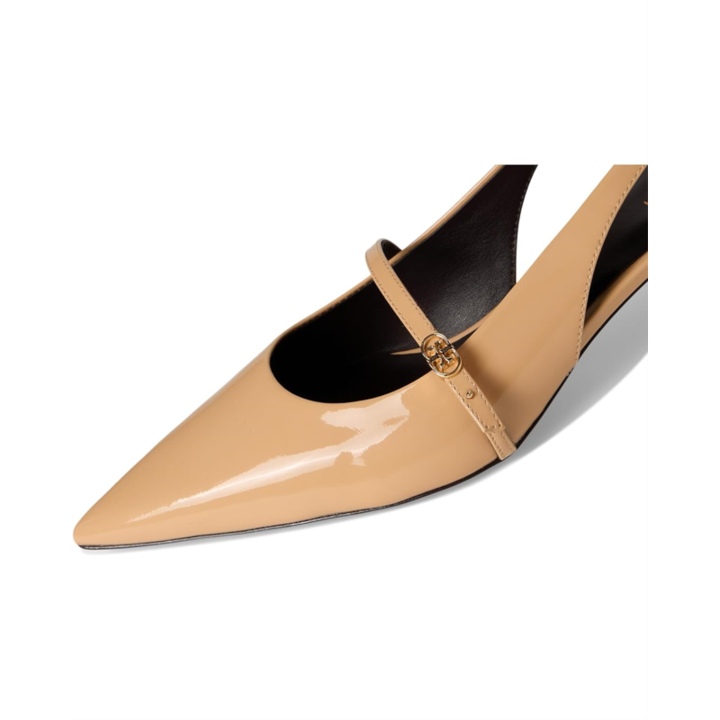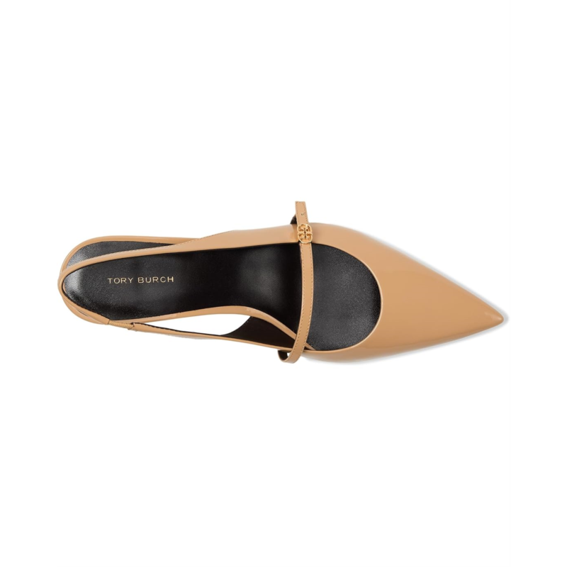 - Level up your casual or party-wear looks wearing the Tory Burch Double T Buckle Mary Jane Pumps. The pointed-toe pumps come with a leather upper, breathable leather lining, and polyurethane insole. The front strap detail with Tory Burch and the slingback strap ensures a secure fit.