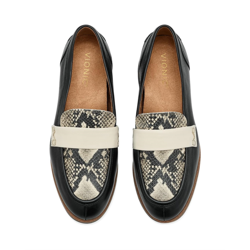 - An updated, modern version of a classic loafer. The VIONIC Cleo loafers offer a lightweight, minimal, translucent lugged sole for a chic look. The exclusive alignment technology balances the whole you. Offered in a subtle, metallic leather upper that is eye-catching, yet refined. A biomechanically designed footbed for comfort that keeps you in motion. Built-in VIO MOTION Technology footbed featuring contoured arch support, with shock-absorbing cushioning, a deep heel cup to provide stability, and forefoot flexibility. For high comfort, we recommend wearing your new Vionic footwear for just a few hours for the first few days to allow your feet to adjust to the new level of orthotic comfort and support. Within one to two weeks, you should find the product completely comfortable and supportive.