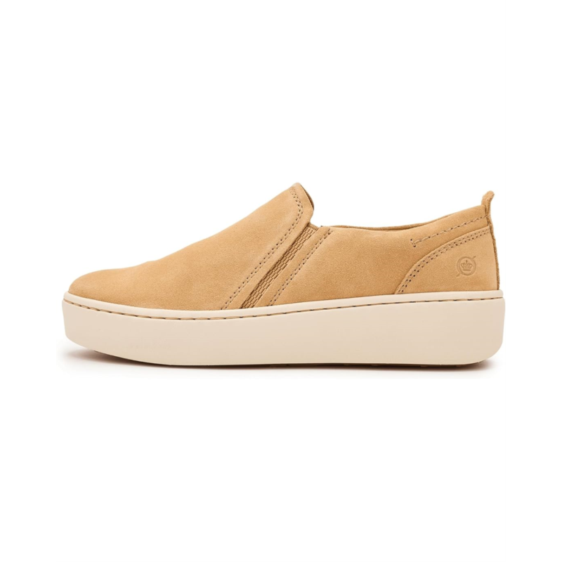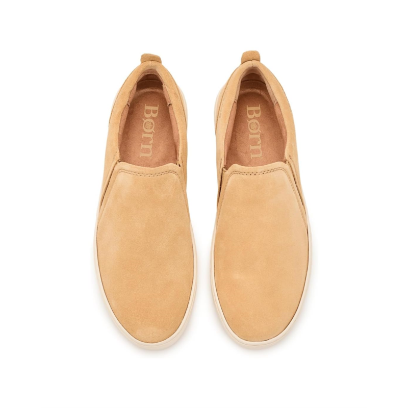 - Step into the Boern Mira Slip-On sneaker for fresh vibes and effortless, lightweight comfort. The style is crafted from a soft, hand-finished full-grain leather or suede leather upper, breathable micro-suede lining, and a removable cushioned micro-suede-covered footbed with added foam for extra comfort.
