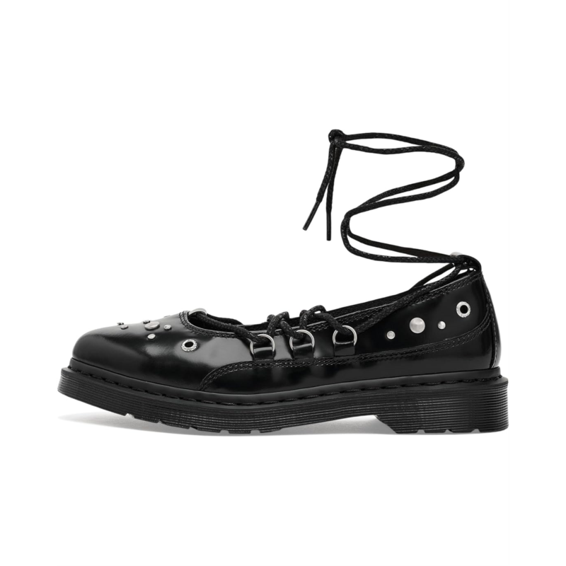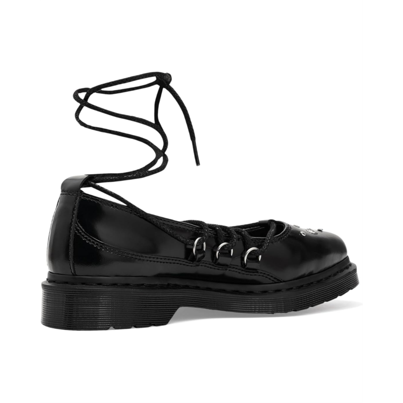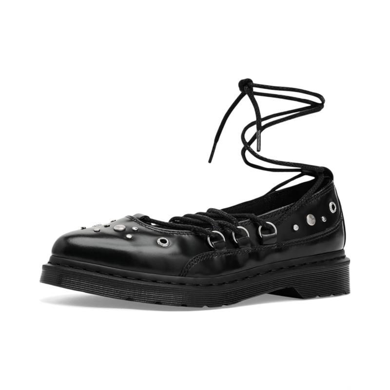 - Easy to slip on and easy to style, these Dr. Martens Elphie II HDW ballet shoes bring polished charm to everyday looks. Crafted from leather upper, lining, and insole, this pair of shoes features ballerina-inspired pointed toe design, tonal stripes and cross-stitch details on the upper, ballet style wrap, and Goodyear welt heat seals and sews the upper and sole together, providing enhanced durability.