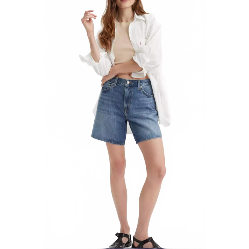 Jean shorts so versatile, you can literally wear them with anything.Elevate your summer wardrobe with the High Rise Women''s Baggy Shorts by LEVI''S, a perfect blend of style and comfort in a solid Worn Memory hue. Crafted from 95% cotton and 5% recycled cotton denim, these non-stretch shorts offer a relaxed fit that''s ideal for vacation or casual outings. Featuring a zip fly with button closure and 5-pocket styling, they reflect a 90s fashion trend while promoting sustainability with recycled materials. Designed for women who appreciate both fashion and responsibility, these shorts are an essential for any laid-back occasion.