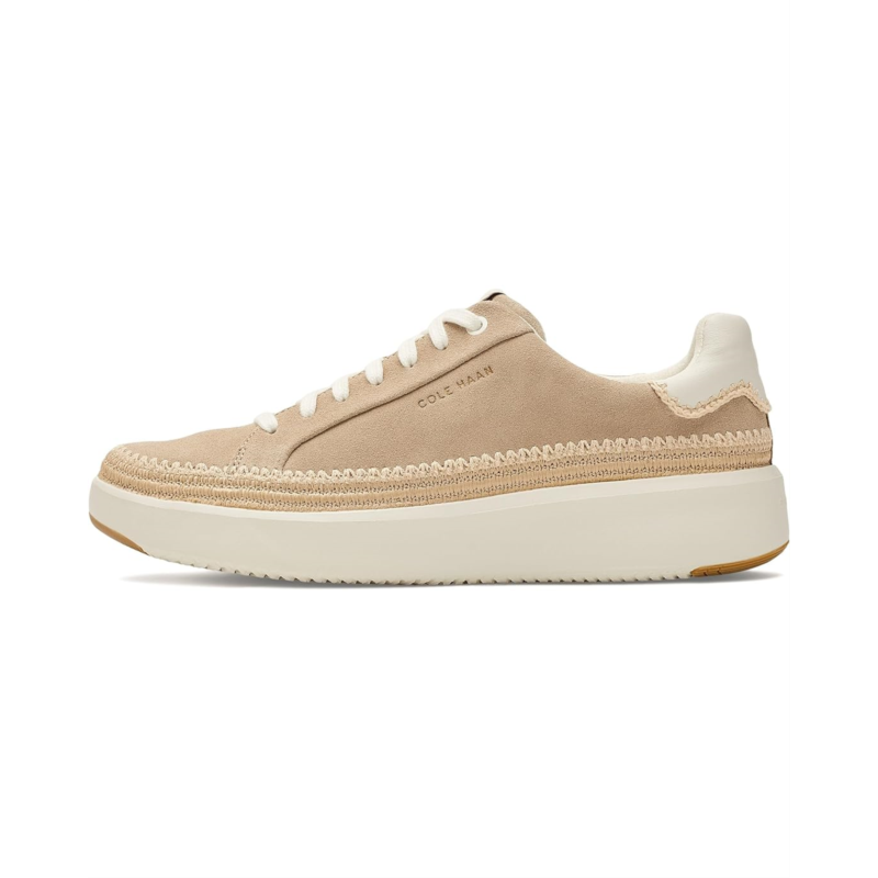 - Step into refined comfort with the Cole Haan Grandpro Topspin Lightweight sneakers, where iconic tennis-inspired design meets modern versatility. Thoughtfully engineered for the moments that matter, these shoes blend lightweight cushioning with premium materials for all-day support and wearability. Whether youre navigating your workday, running errands, or heading out for an evening with friends, their sleek leather finish and minimalist silhouette elevate any outfit with effortless sophistication. They are made of a leather upper, ethylene vinyl acetate insole, and textile lining. A sleek blend of elevated sneakers and everyday essentials, these shoes are a top choice in sneakers for women who value comfort without compromise. Designed with Cole Haans signature craftsmanship, these lace-up sneakers are the go-to sneakers that move with you - stylish, supportive, and built to last.