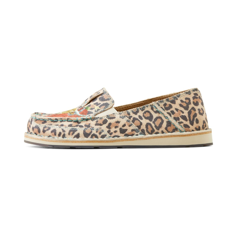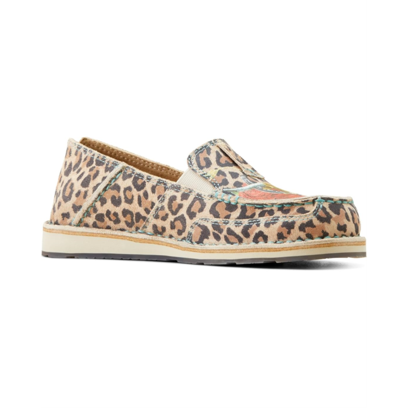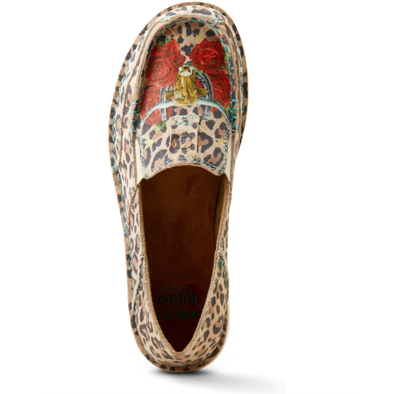 - Step into style wearing the slip-on style Ariat Cruiser Rodeo Quincy. Crafted from leather upper, this pair of fashion sneakers features moc toe design, lightweight EVA midsole that absorbs shock, side stretch elasticized panels, and cheetah print with rose and steer head design on tongue.