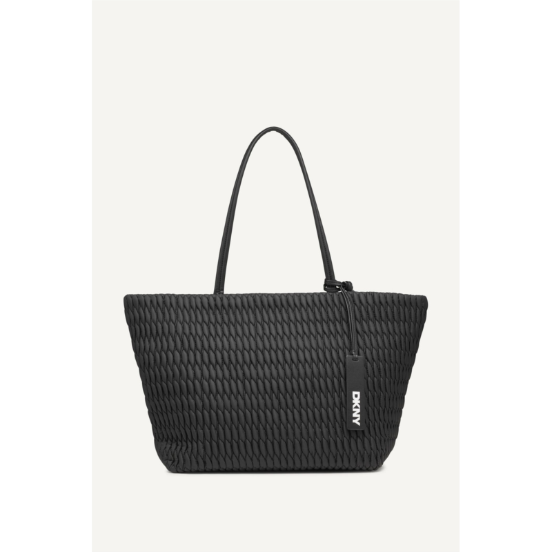This DKNY tote features a zippered closure, ensuring convenient and secure access to your essentials|Hardware Color-Black |Weight - 21.53 OZ | Double Handle | Lining-Polyester | Zipper Closure | Height - 11.8 IN | Width - 14.9 IN | Depth - 5.9 IN | Handle Drop - 11 IN | Fabric Composition - Nylon | Lining - Polyester