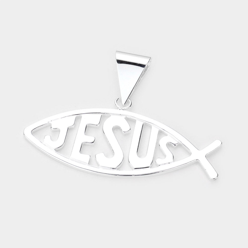[US] FASHNZFAB jesus message metal ichthys pendant - silver