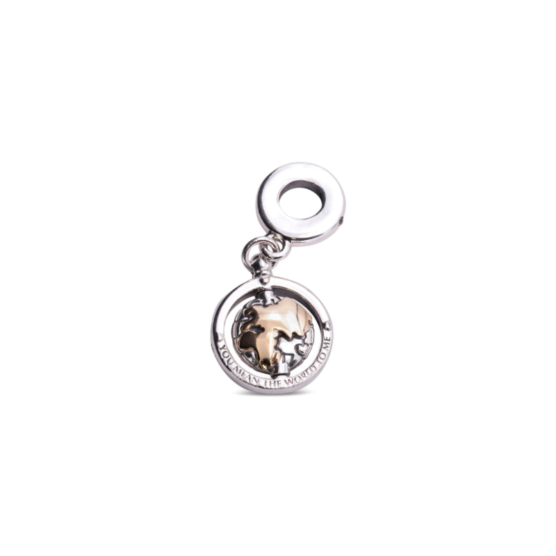 - Hand-finished in sterling silver this design features a flat spinning globe inside a round frame with a sparkling stone on the bail.