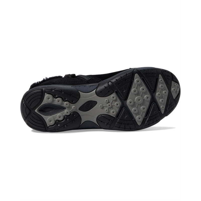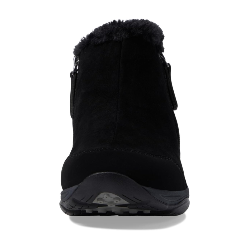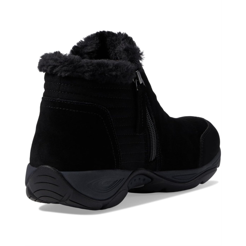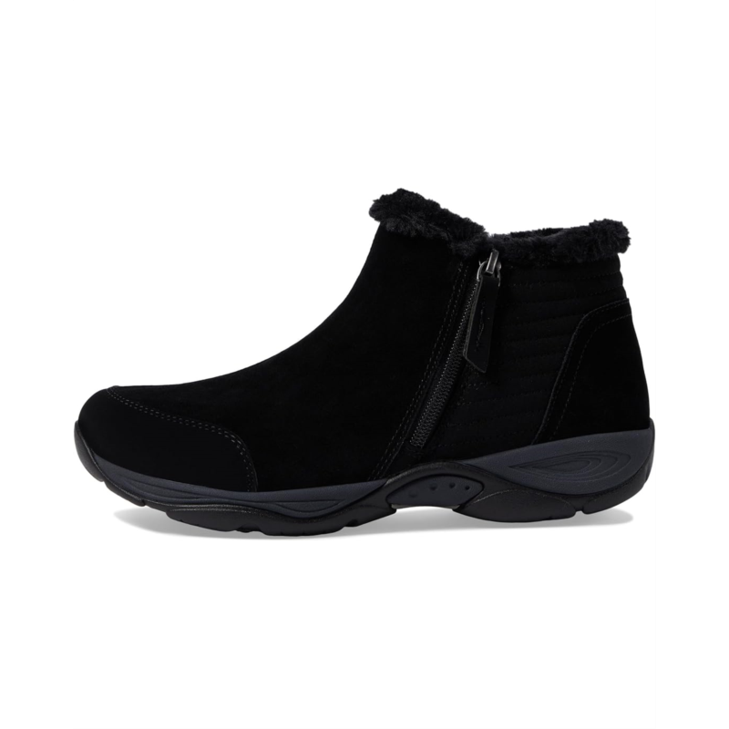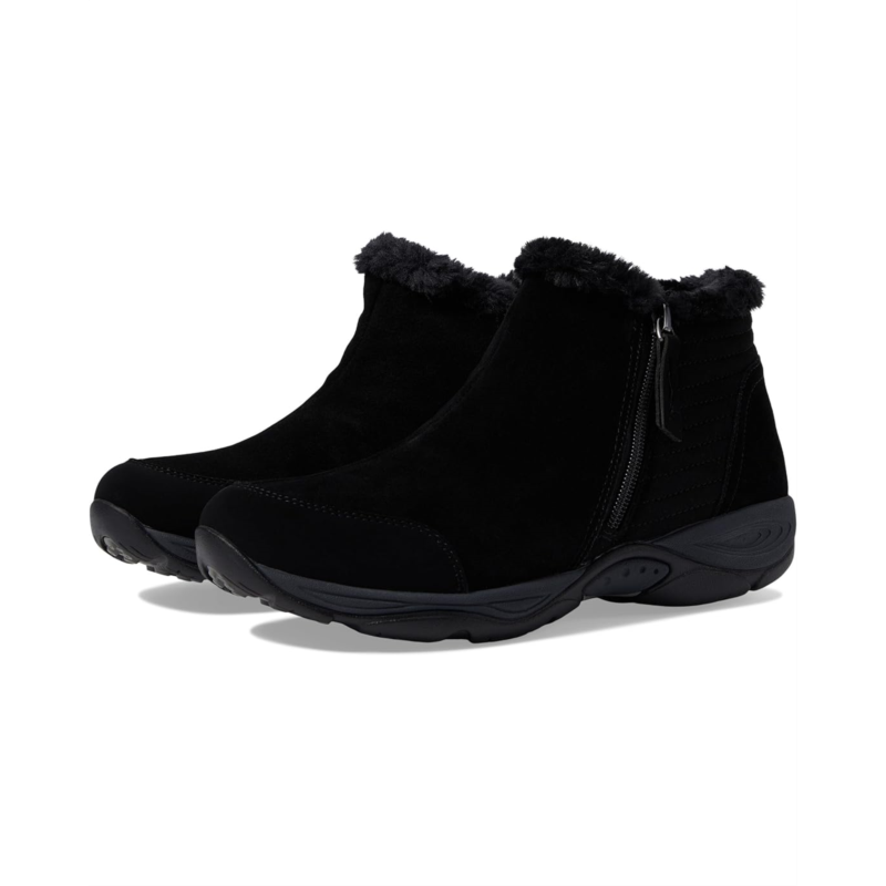 - The Easy Spirit Elinot water-resistant suede ankle bootie offers cozy comfort with a cute faux-fur trim.