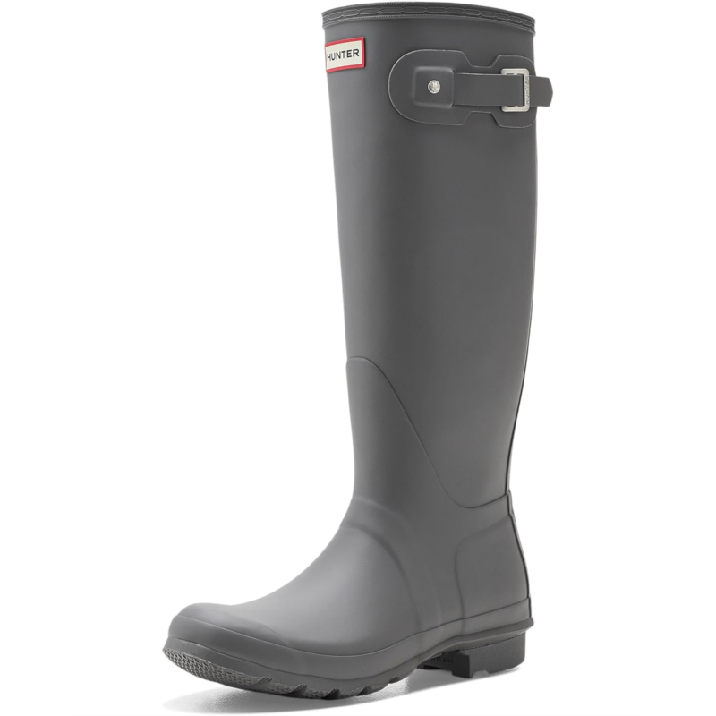 - 100% waterproof, the Hunter Original Tall Boots are made with a rubber upper that features an adjustable buckle closure. The polyester insole and lining keep your feet comfortable. These pull-on boots are an ideal choice for your rainy adventures.