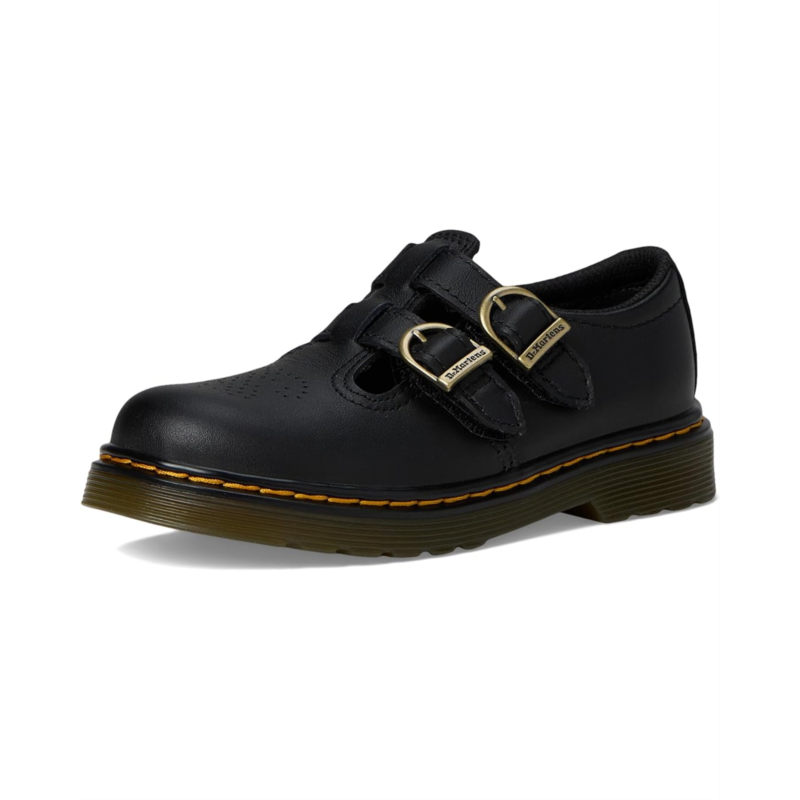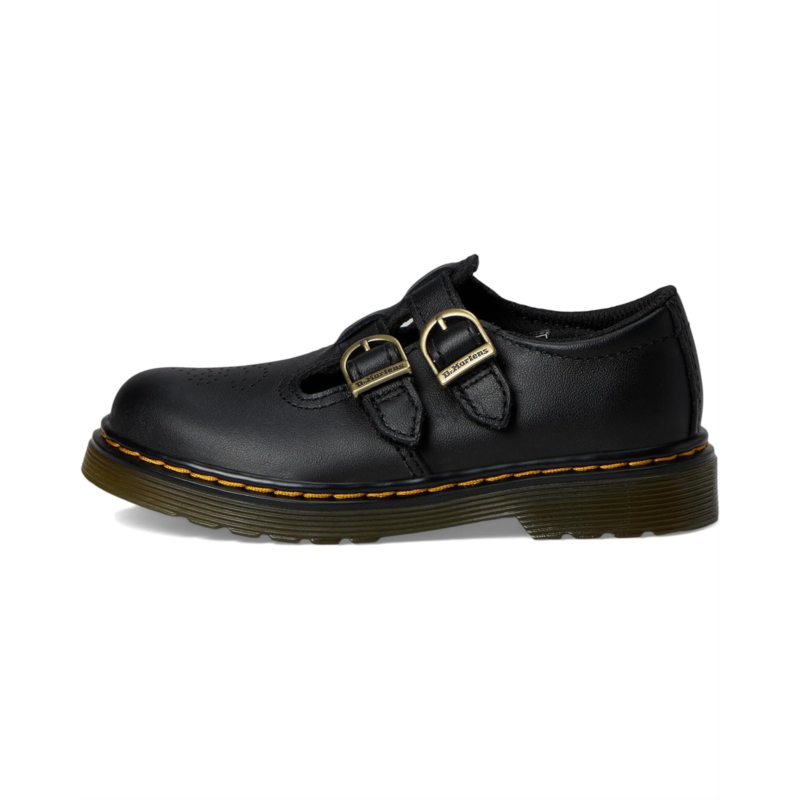 - The Dr. Martens Kid''s Collection 8065 Toddler Mary Jane is the tough take on the classic T-bar shoe, bringing the classic silhouette to the next generation. It is built with a lightweight, full-grain leather upper that offers a soft & supple feel, a polyester lining, and an ethylene vinyl acetate insole. The low-top flat shoes feature dual horseshoe buckles with hook-and-loop closures on the straps and iconic yellow welt stitch detail.