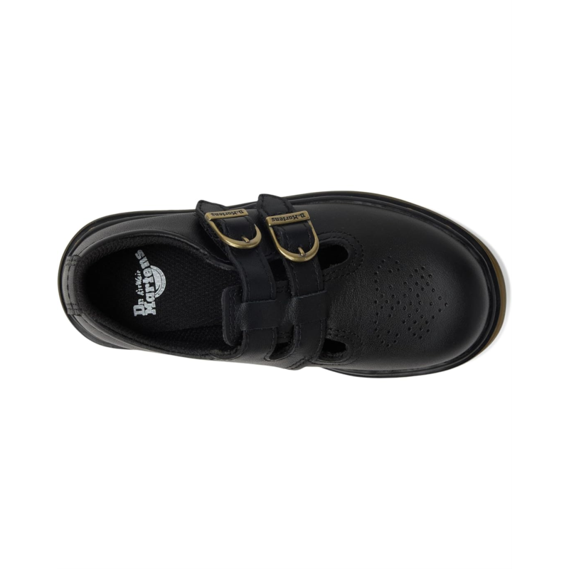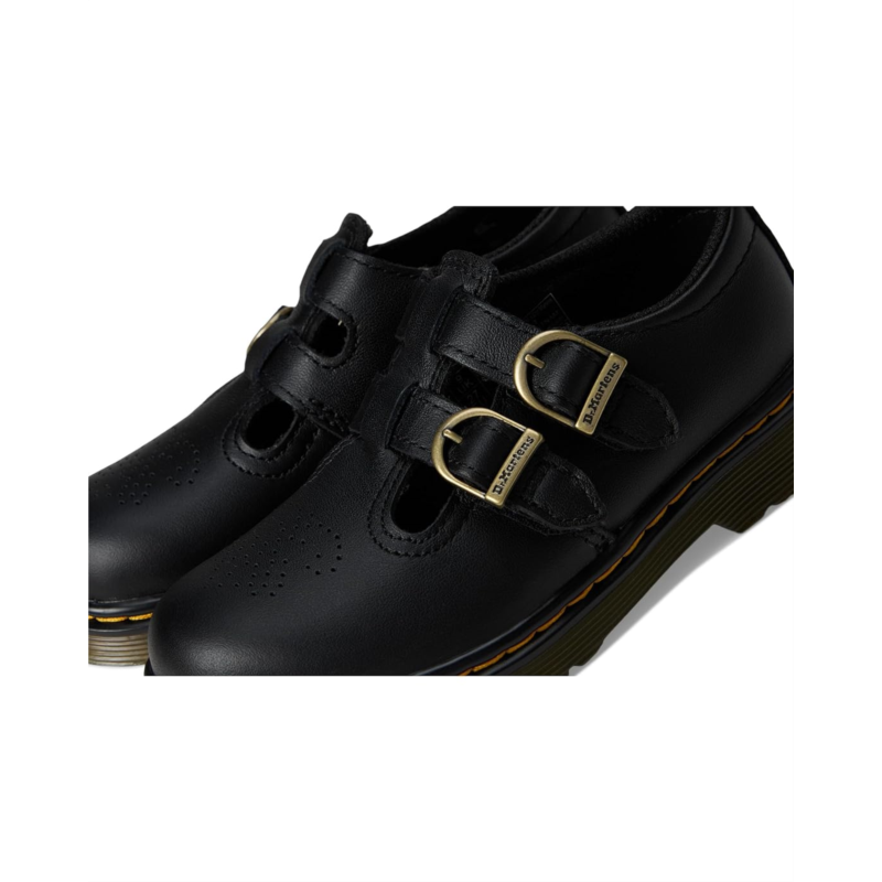 - The Dr. Marten''s Kid''s Collection 8065 T shoes are reimagined with playful flair and kid-friendly functionality. Crafted from glossy patent leather upper, they feature dual horseshoe buckles with adjustable hook-and-loop closures. The perforated brogue detailing across the toe and lightly padded collar ensure comfort and style for little feet.