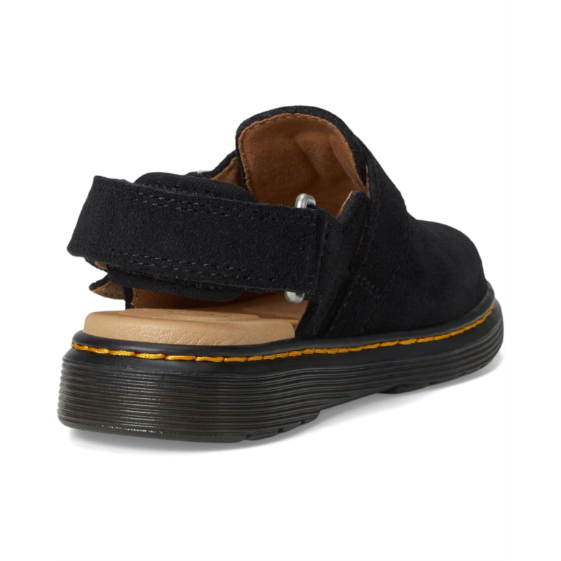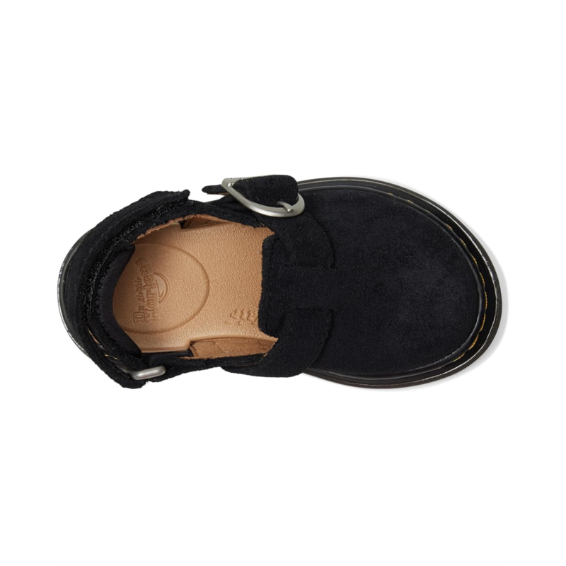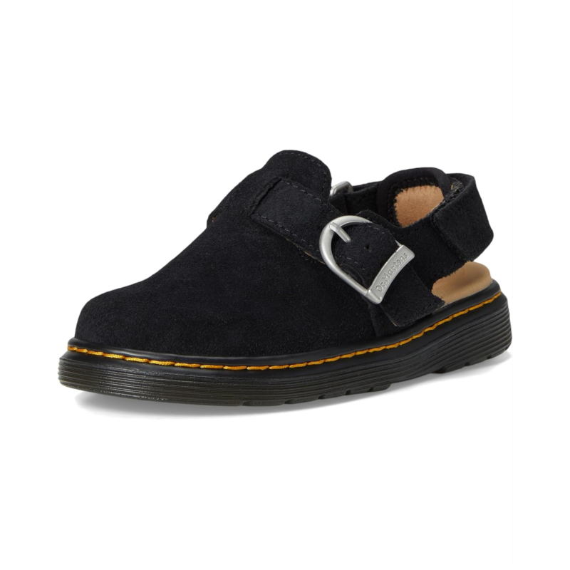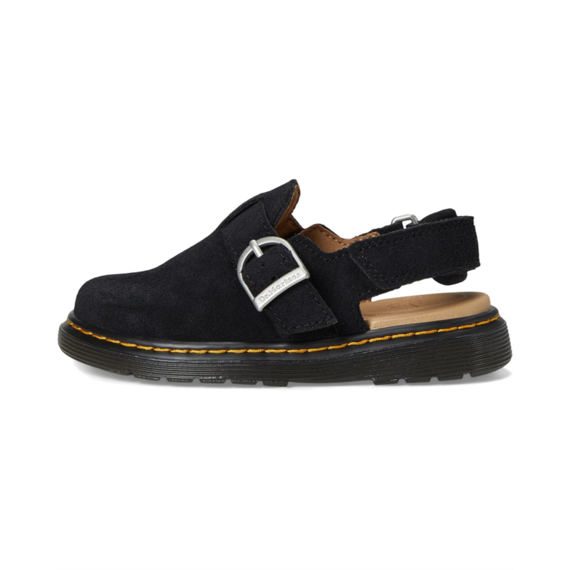 - Built for little trendsetters with big adventures ahead! The Dr. Marten''s Kid''s Collection Jorgie T is a versatile, wear-anywhere mule crafted from soft Bronx suede, perfect for every season. Designed for comfort and flexibility, this stylish slip-on features an adjustable buckle strap for a secure fit, a lightweight EVA insole, and a durable PVC outsole that keeps up with active, growing feet. The breathable polyester lining ensures all-day coziness, while the iconic Docs DNA delivers an effortlessly cool look.