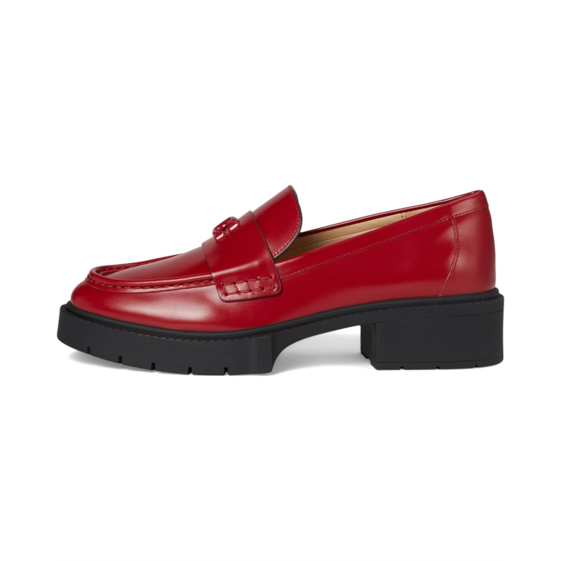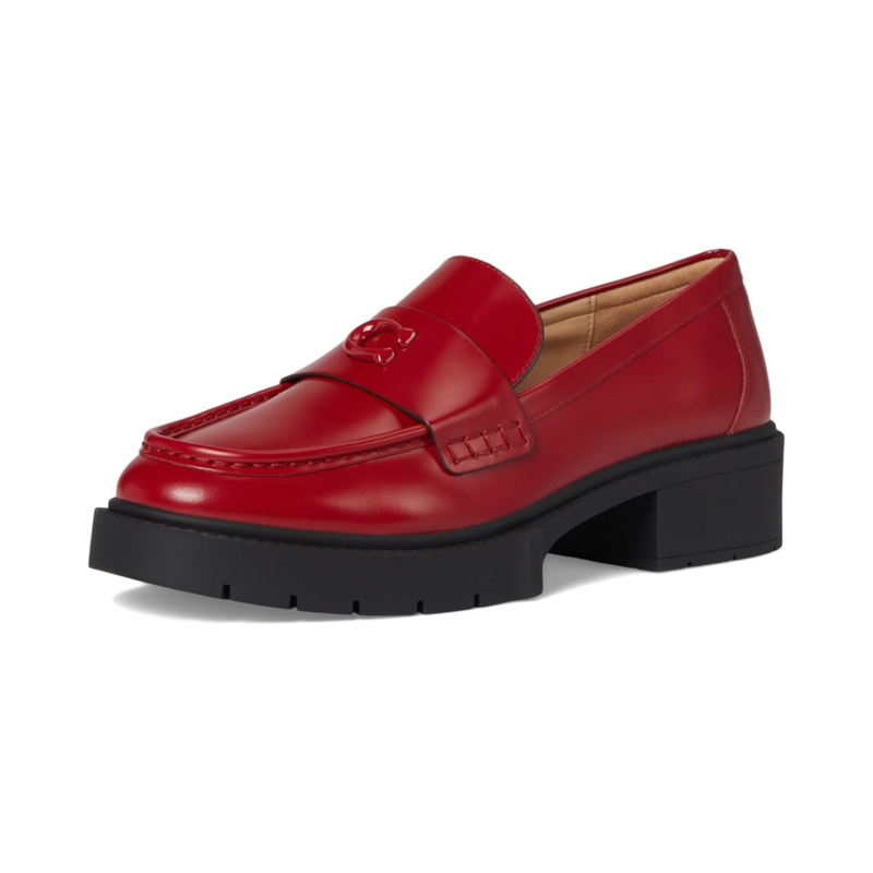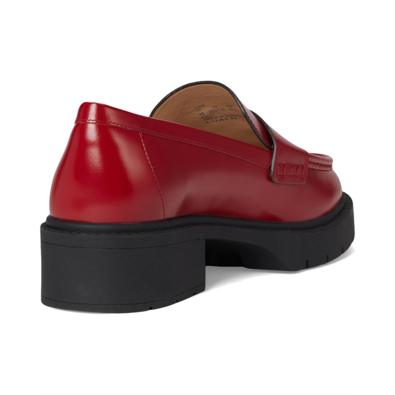 Take your effortless style to new heights in the COACH Leah Spazzolato Loafers. These slip-on style shoes features a leather upper, man-made leather lining and insole, and signature hardware on the vamp.