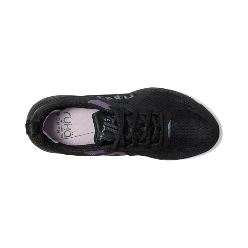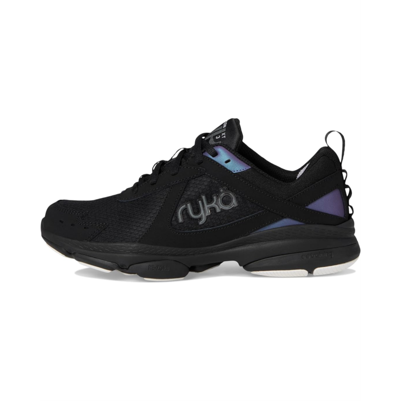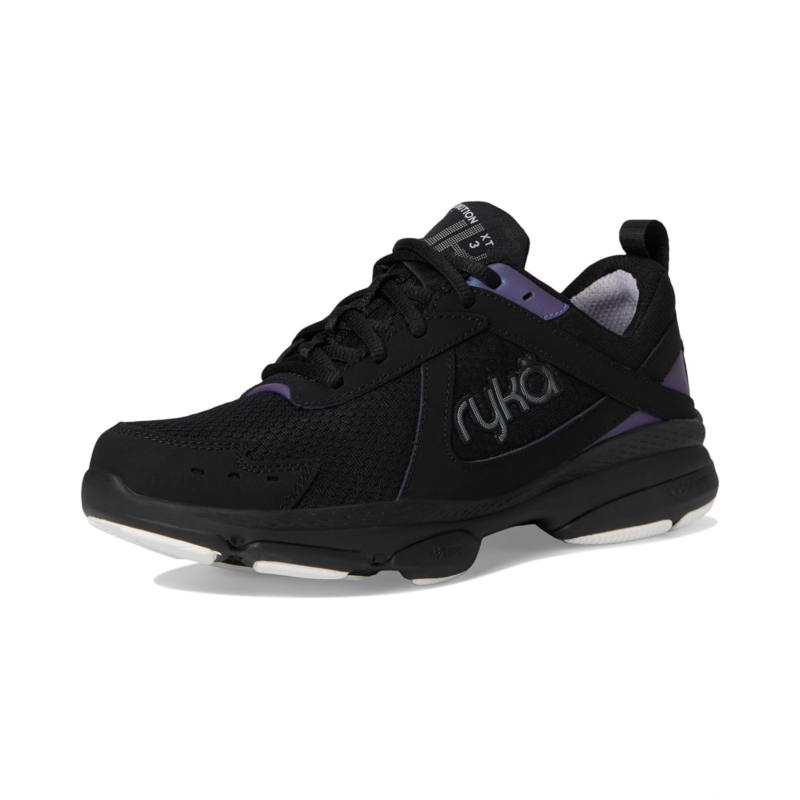 Power up your training game wearing the Ryka Devotion XT 3 - the ultimate blend of fierce energy and functional design, made specifically for women. From HIIT to boot camp, this ankle-high training shoe delivers next-level support with RE-ZORB responsive cushioning and RE-ZORB LITE pods for unmatched shock absorption and smooth landings. The breathable mesh upper with metallic leather overlays keeps your look fresh while you move with purpose. A secure lace-up front, padded collar, and anatomical insole with arch and heel support provide cloud-like comfort with every step. Flex grooves in the durable six-piece rubber outsole promote natural movement, while the pivot point helps you turn with ease.