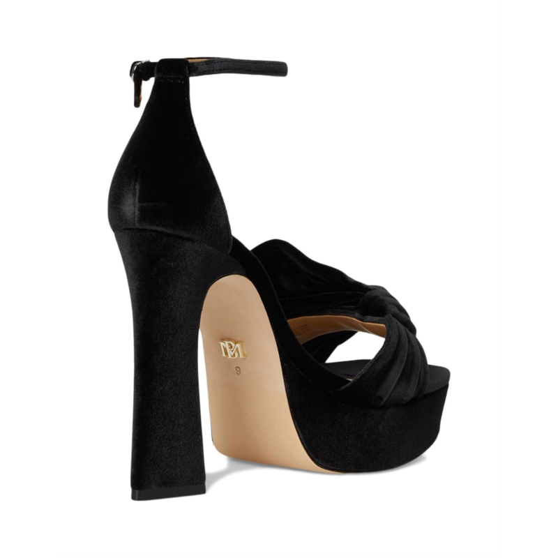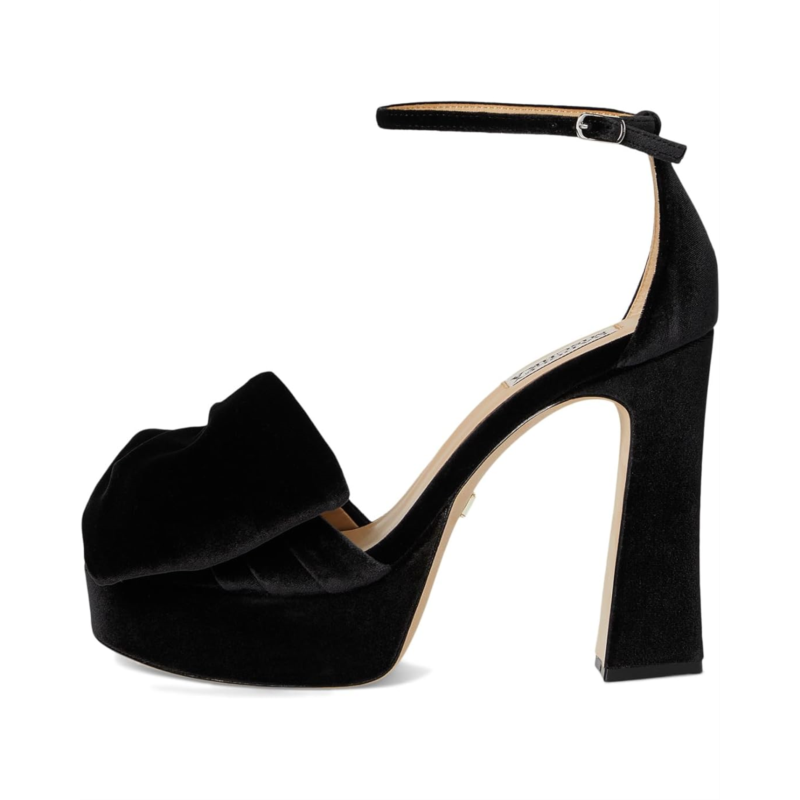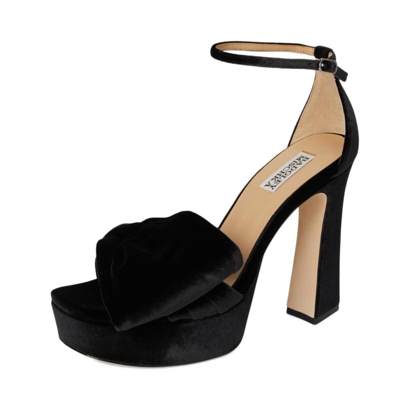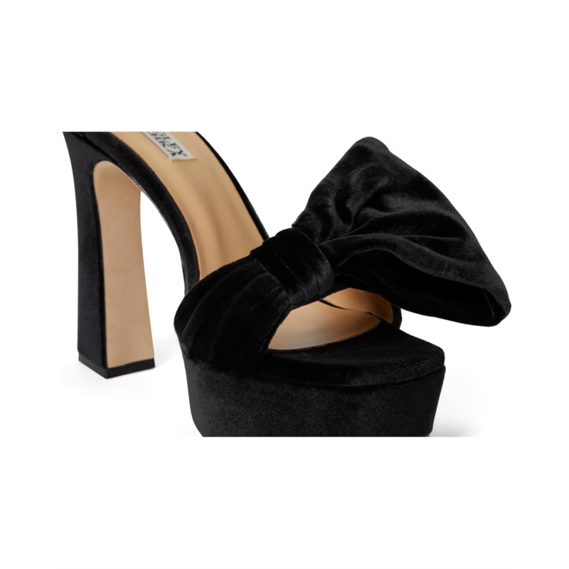 Sculpted for the bold, the Badgley Mischka Alora sandals are crafted from silk upper, leather lining, and insole. These platform sandals with bow detailing on the vamp features round toe, block heels, and buckle closure.