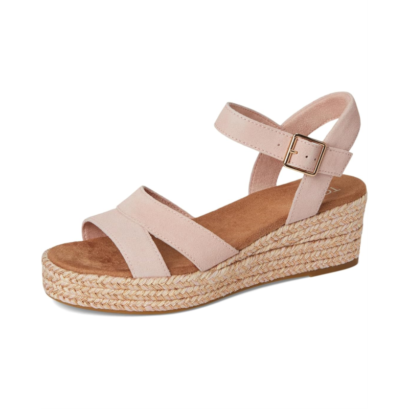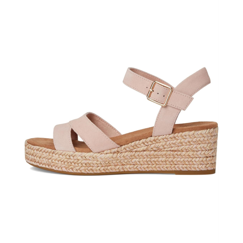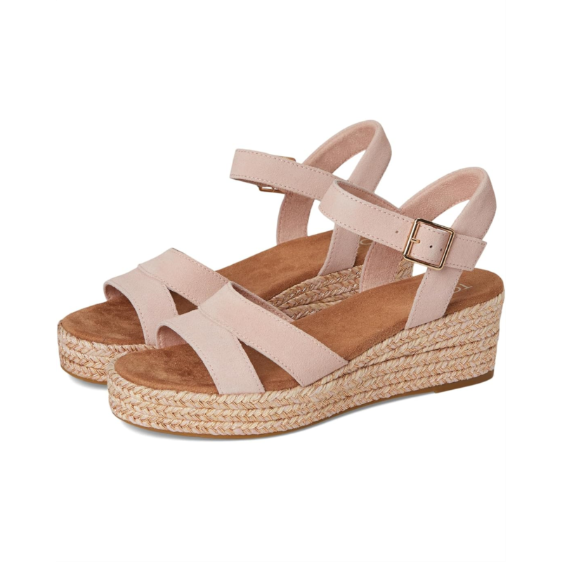 Walk in style and comfort by wearing the TOMS Audrey sandals. The slip-on style sandals have an open round-toe design, platform wedges, and an ankle strap with an adjustable buckle closure. The rope wrap wedges have textile upper, microfiber High rebound comfort OrthoLite Eco X40 Hybrid insoles, and polyester lining for breathability and comfort. The sandals have jute rope wrap midsole.