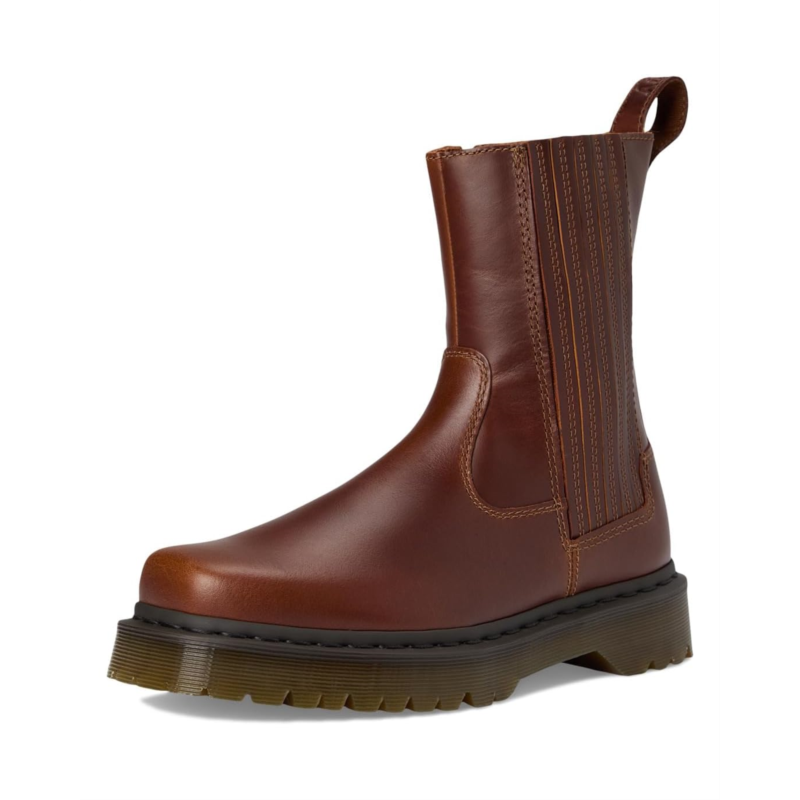 Dr. Martens Amaayah Lo Leather Bex Pull-On Boots! Featuring timeless Orleans leather that matures beautifully with age, these boots are as durable as they are stylish. The unlined and EVA insole keep your feet cozy and supported, while the PVC outsole ensures traction with every step. Slip in easily thanks to the elasticized outer gusset and inside zip. With a round toe, ankle-high Chelsea design, and Bex Squared sole with tough commando tread, you''ll conquer any terrain with confidence. Finished with an embossed AirWair heel loop and iconic yellow Goodyear welt stitch, these boots are a must-have.