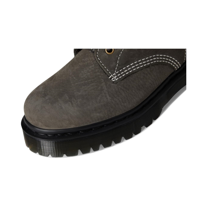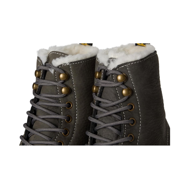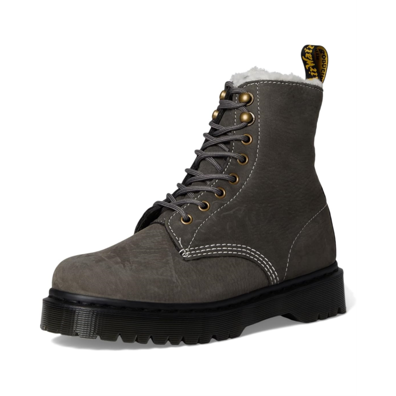 Soft at heart, tough in nature. The Dr. Martens 1460 Pascal Bex Fl boots are reinforced with weather-textiles that are crafted for all the elements. Their inner is fitted with a faux fur WarmWair lining to keep the cold out. Across the upper, water-resistant Milled Nubuck leather with white stitching keeps wet weather at bay while being relaxed from the first wear. Their antique gold hardware contrasts with the leather, and the silhouette is finished with the brand''s scripted heel loop, black welt stitching, and a smoke Bex polyvinyl chloride outsole for extra height. These ankle-high laced boots are designed with a polyester insole that keeps your feet cool and comfortable.