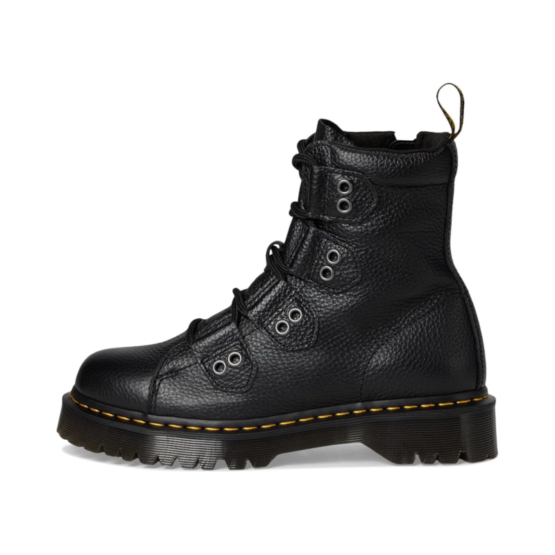 A statement from lace to toe, the Dr. Martens 1460 Bex Ltt boot turns up the volume with textured leather, chunkier laces and a taller sole. Built with Milled Napa leather upper, one of DM''s super-soft leathers that''s relaxed from the first wear. Antique silver trims and eyelets decorate the upper, with laces weaving between them. A smoke Bex sole adds extra height without reaching full platform status, while signature detailing - a scripted heel loop and yellow welt stitching - cement the boot''s unmistakable DM''s DNA.