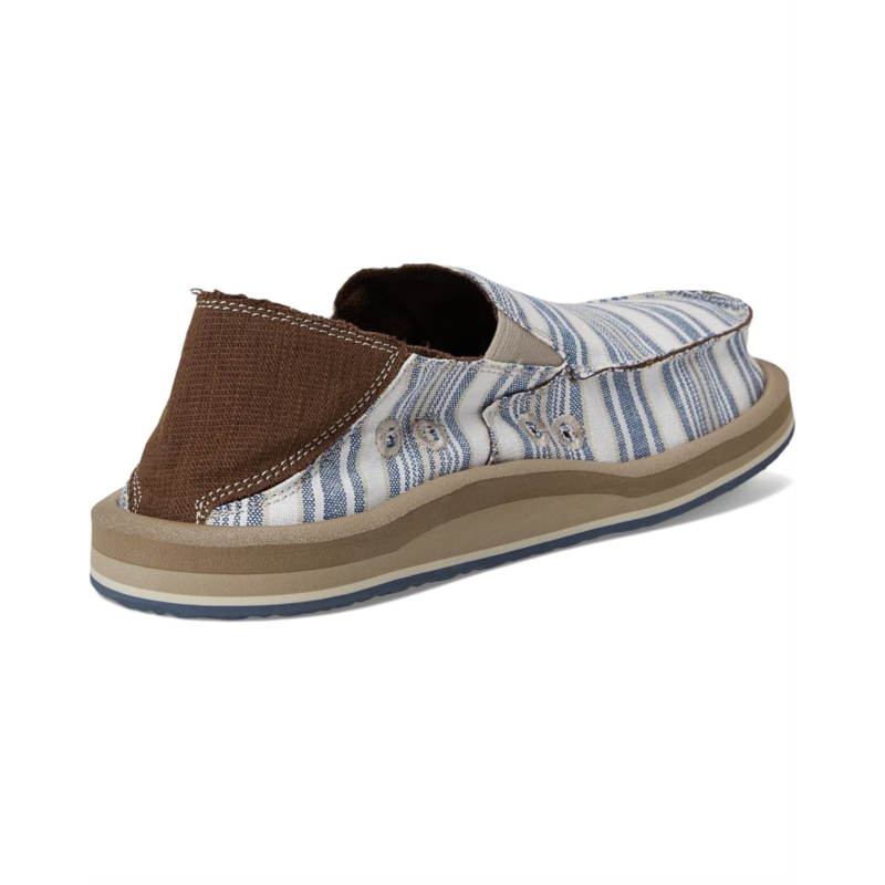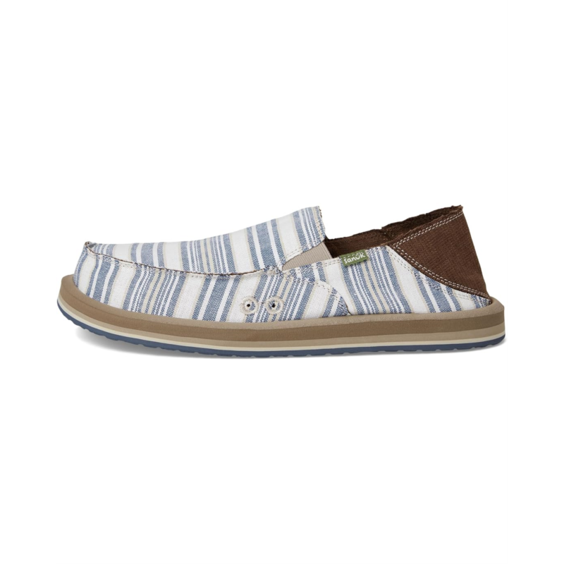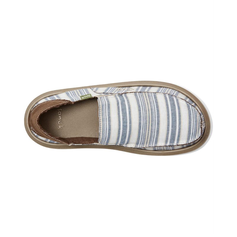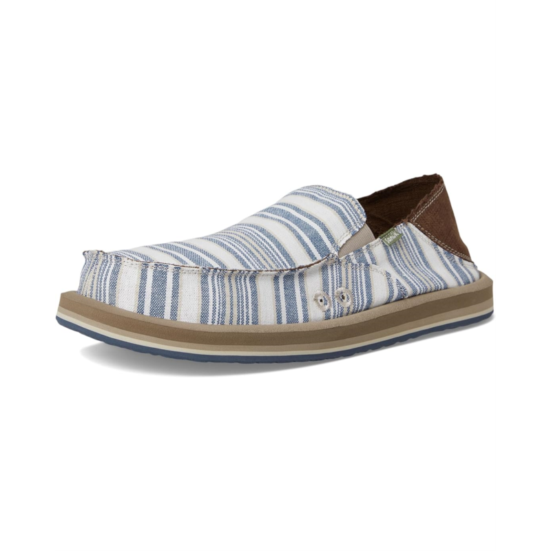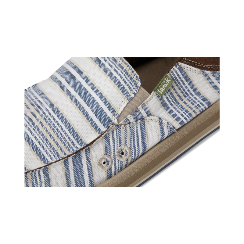 The Sanuk Donny Nautical shoes are a brand new style featuring a nautical-inspired cotton upper with traditional raised toe seam, elastic gore, and kick-down heel counter for easy on and off. All cotton used is responsibly sourced. These slip-on boat shoes are made of a linen lining and contoured high rebound soft top footbed for barefoot-friendly wear. Match your casual outfits and chic styles with these low-top shoes.