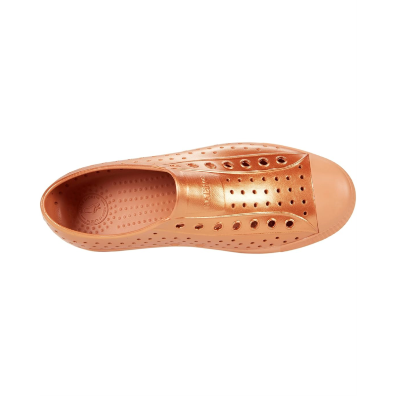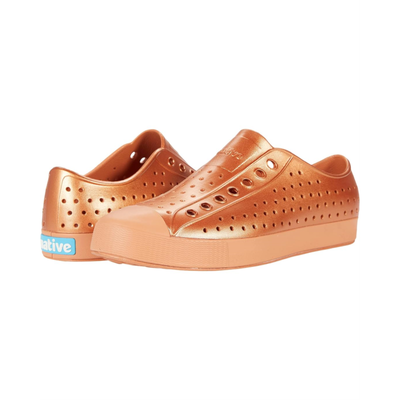 Your little one with walk, run, and jump in comfort in the Native Shoes Jefferson Metallic slip-on.