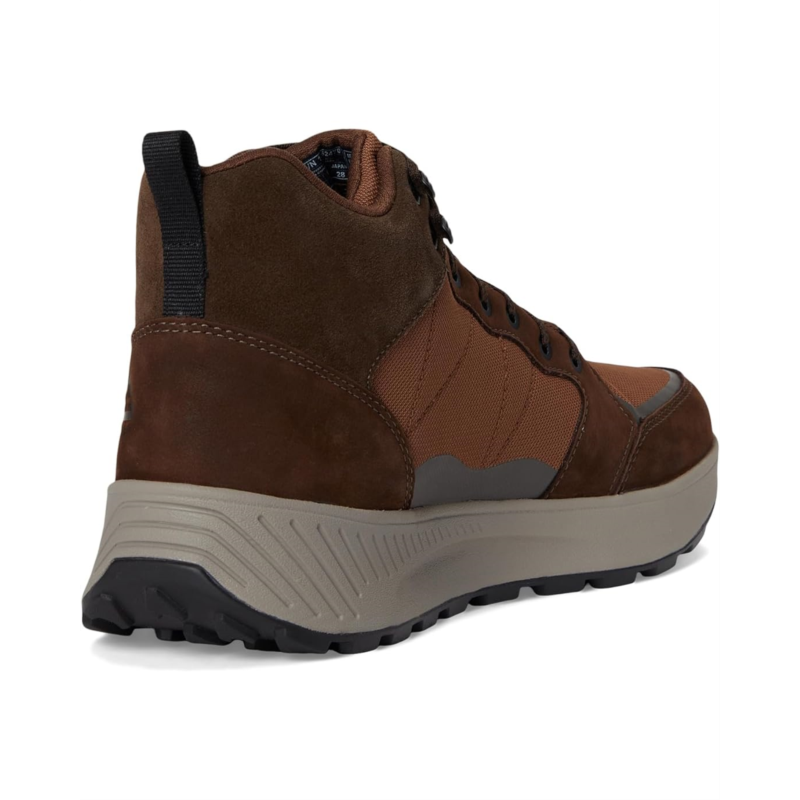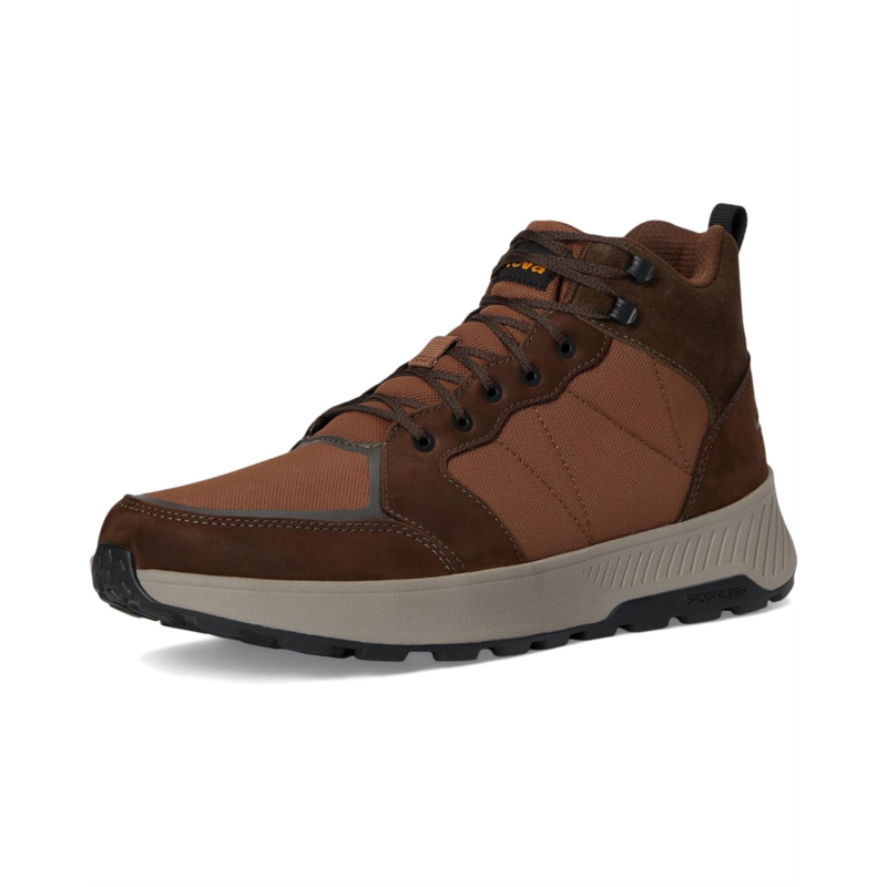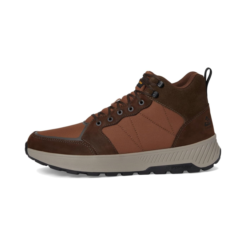 The Teva Ellwood Mid shoes feature waterproof materials, plus waterproof bootie construction below the ankle. Treated with water-repellent coatings, the wrap knit and suede upper offers abrasion resistance and support while the Speedhooks ensure quick, lock-down lacing. These lace-up sneakers are made of a rubber insole and polyester lining. The rugged Spider Rubber outsole is extremely durable and supplies great traction. Treated with Life Natural, these cushioned shoes are designed for your hiking adventures.