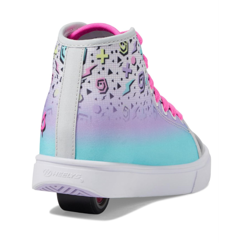 The Heelys Veloza is a mid profile sneaker with sturdy wheel construction and a vulcanized cupsole.