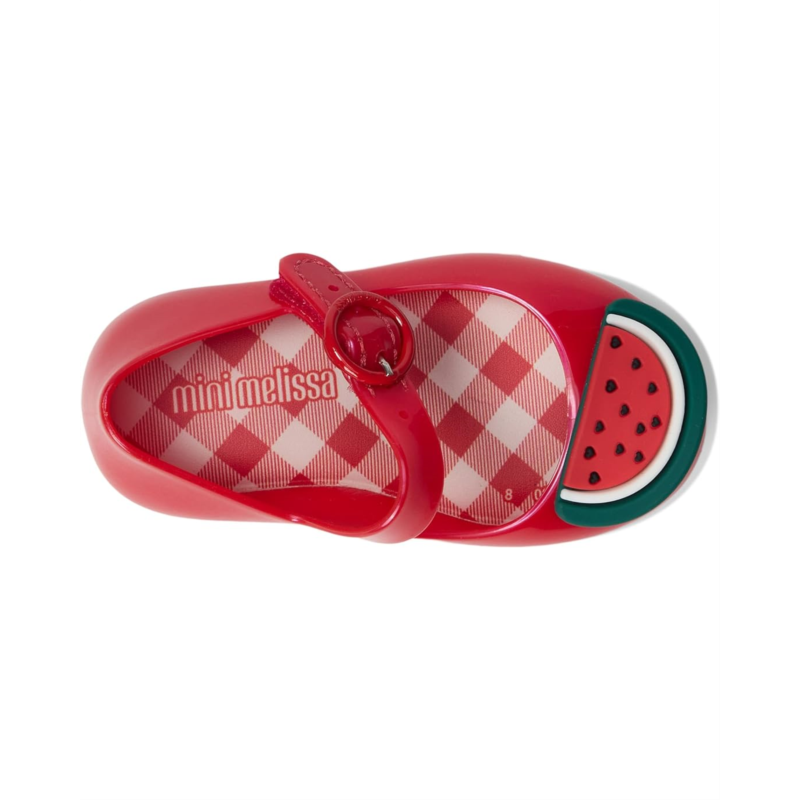 The Mini Melissa Sweet Love Picnic Baby shoes are ballet shoes that feature light-as-air construction for all-day comfort. They are made of a picnic blanket-patterned Grenflex insole for flexible comfort. The 100% recycled MelFlex PVC upper is styled with floral decals and an adjustable buckle closure while the waterproof construction keeps your kid''s feet dry. Durable, flexible, and hypoallergenic, these Mary Jane shoes are a part of the Mini Melissa Sweet Love Picnic collection.