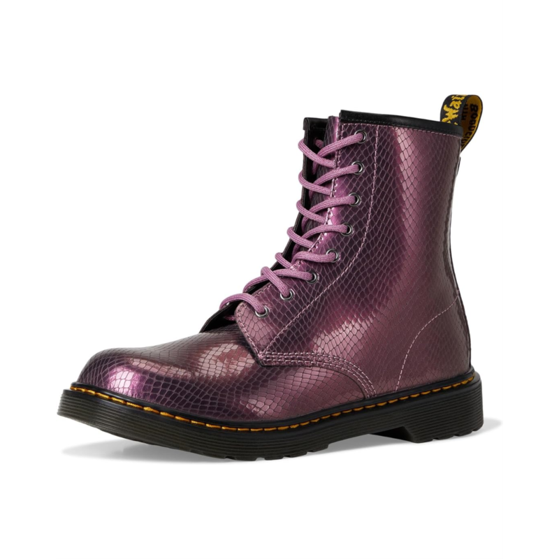 The Dr. Martens Kid''s Collection 1460 Pascal shoes are made for small Dr. Marten''s wearers with a big Dr. Marten''s attitude. Made with an eye-catching Nebula Glitter leather, these lace-up boots are finished with an easy-on/easy-off zippered side closure. They have a padded collar to keep the little one''s feet comfortable. These high-top ankle boots are designed with a polyester insole and lining for all-day comfort. Comfortable and stylish, these leather boots are perfect to pair with your kid''s different outfits.