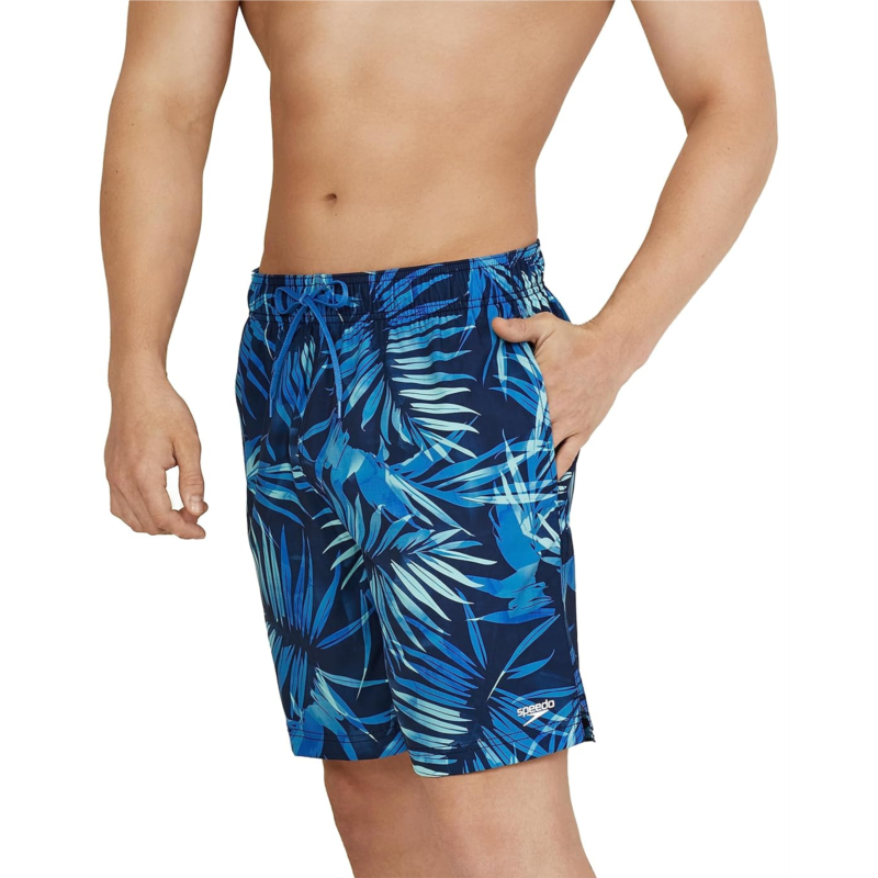 Have fun wearing the versatile pair of Speedo Floral 18'' Volley Shorts. A durable and soft-knit construction, these shorts offer both style and utility with their printed design and two functional side pockets. The regular-fit bottom wear also comes with an elasticized waistband and a drawstring closure which offers a secure fit. Wear these shorts for ultimate performance while you explore all kinds of water activities.