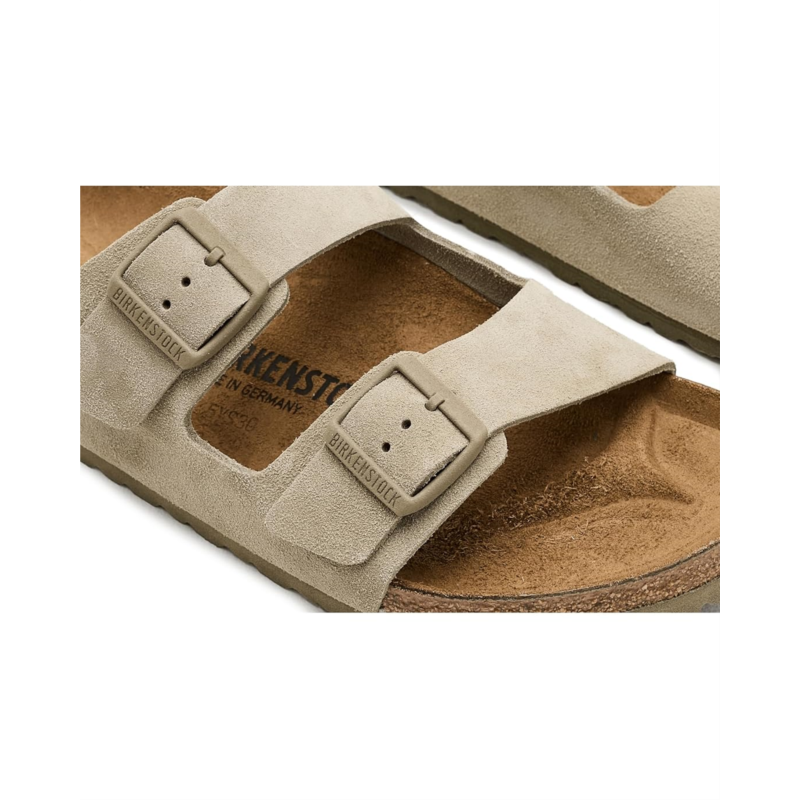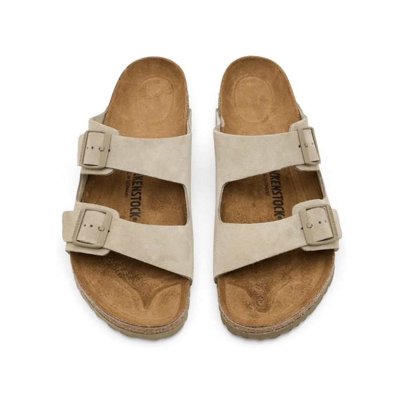 - An icon of timeless design and legendary comfort, the Birkenstock Arizona - Suede sandal has been defining style since 1973. Classic, velvety suede provides the laid-back look that appeals in every season and style. Complete with legendary BIRKENSTOCK design elements, like a contoured cork-latex footbed for the ultimate in support.
