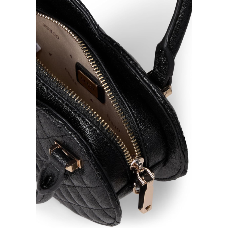 Fall in love carrying the GUESS Atabey Heart Bag, crafted from quilted eco small-grain PU that brings style to your wardrobe without compromising on luxury. Designed with a sleek top handle and a detachable crossbody strap, it effortlessly adapts to your mood, carry it cute in hand or wear it hands-free on the go. Inside, the spacious main compartment and three thoughtful pockets keep your essentials organized, while the polyester lining adds a smooth, durable finish. A secure zippered closure ensures everything stays in place, making it the perfect blend of charm, function, and modern fashion. This heart-shaped beauty brings playful confidence to every step, giving you a statement piece that''s as practical as it is iconic.