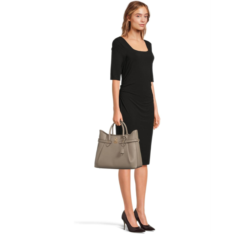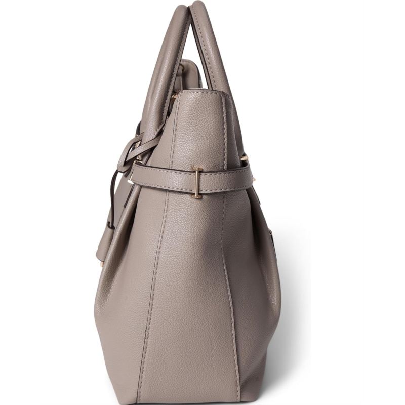 The GUESS Yesba Girlfriend Satchel is crafted in eco pebble polyurethane for a luxe look. Designed with dual top handles and a detachable crossbody strap, it offers versatile carry options to suit your day. The structured silhouette features a zippered top closure and protective bottom feet, helping maintain its shape while keeping your belongings secure.