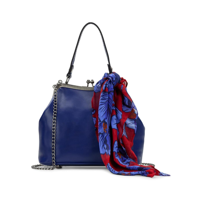 The Patricia Nash Laureana Frame Satchel with Grecian Rose Scarf is where vintage charm meets modern sophistication. Handcrafted in rich full-grain distressed leather, this compact yet captivating silhouette is designed for those who appreciate elegance in every detail. With signature brushed brass hardware, protective metal feet, and leather trim finished with a refined burned edge, it''s a true artisan masterpiece. The interior boasts a faux suede lining with one zipper and two slip pockets for daily essentials, while the detachable chain strap and top handle offer versatile carry options. Heavy handcrafted stitching adds character, and the Grecian Rose scarf ties the whole look together - literally.