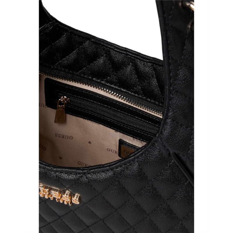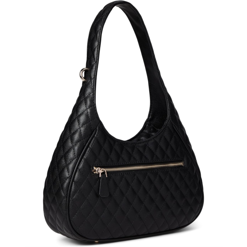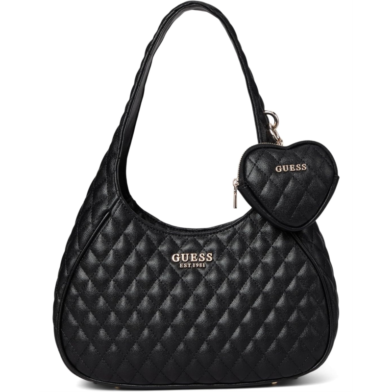 The GUESS Atabey Hobo blends modern texture with everyday functionality, crafted in quilted eco small grain polyurethane for a luxe, tactile finish. Its softly structured silhouette is grounded by protective bottom feet, helping preserve the shape and finish over time. A removable charm adds a playful flair, while the spacious interior and zippered top closure make it ideal for daily essentials.