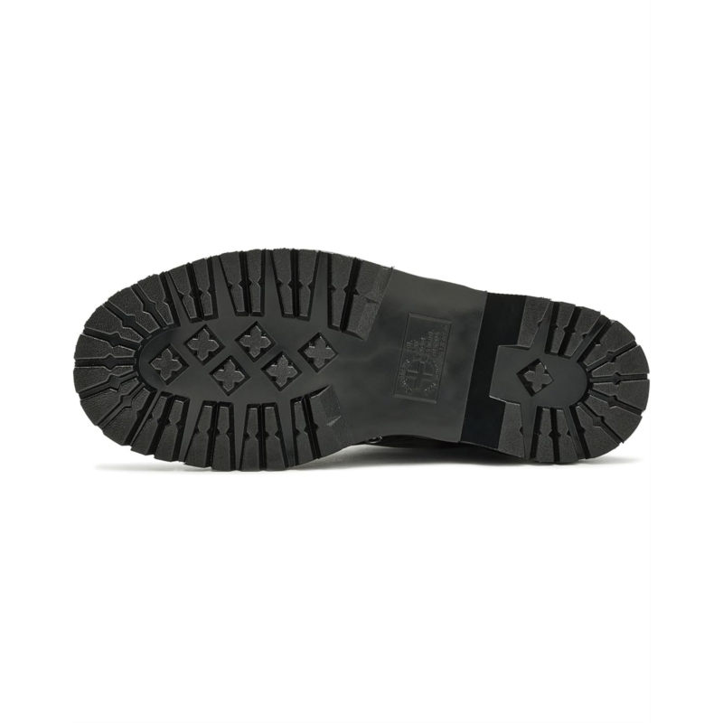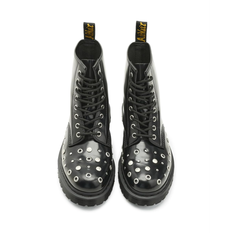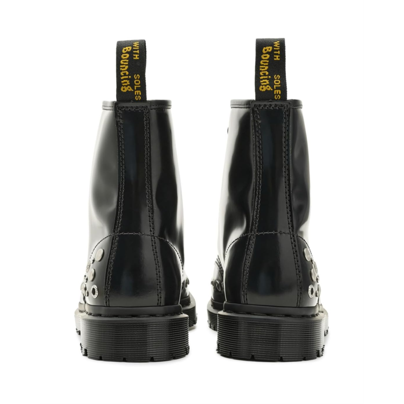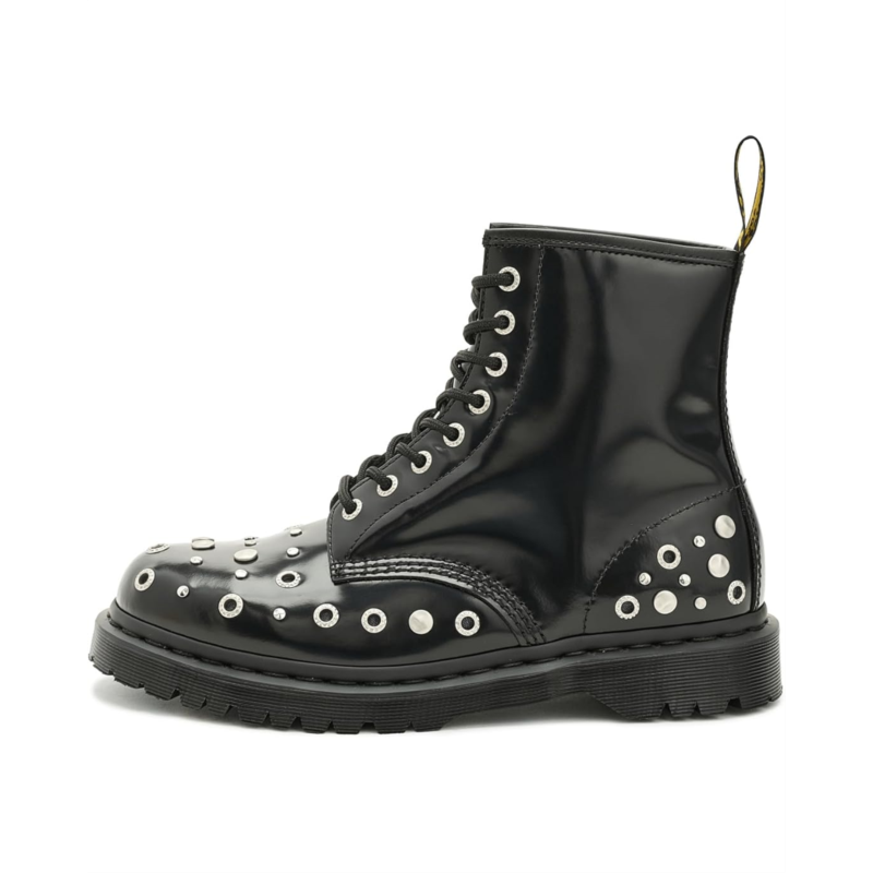- Styled with an angular shape and a high-shine finish, the Dr. Martens 1460 Hardware boots add a bold, futuristic look to your outfits. The mid-top leather upper of these boots features a traditional 8-eyelet lace-up closure that offers a perfect fit. These work boots are designed with Goodyear welt stitching which makes them a durable choice. The EVA foam footbed provides all-day comfort. Make your fashion statement wearing these leather boots.