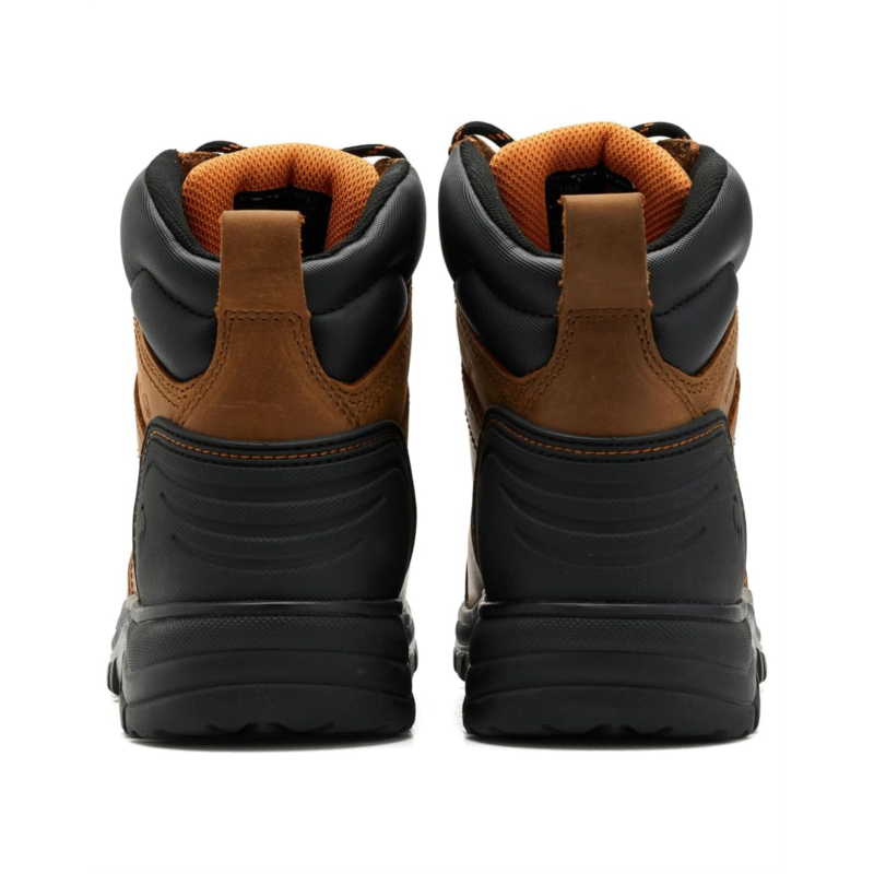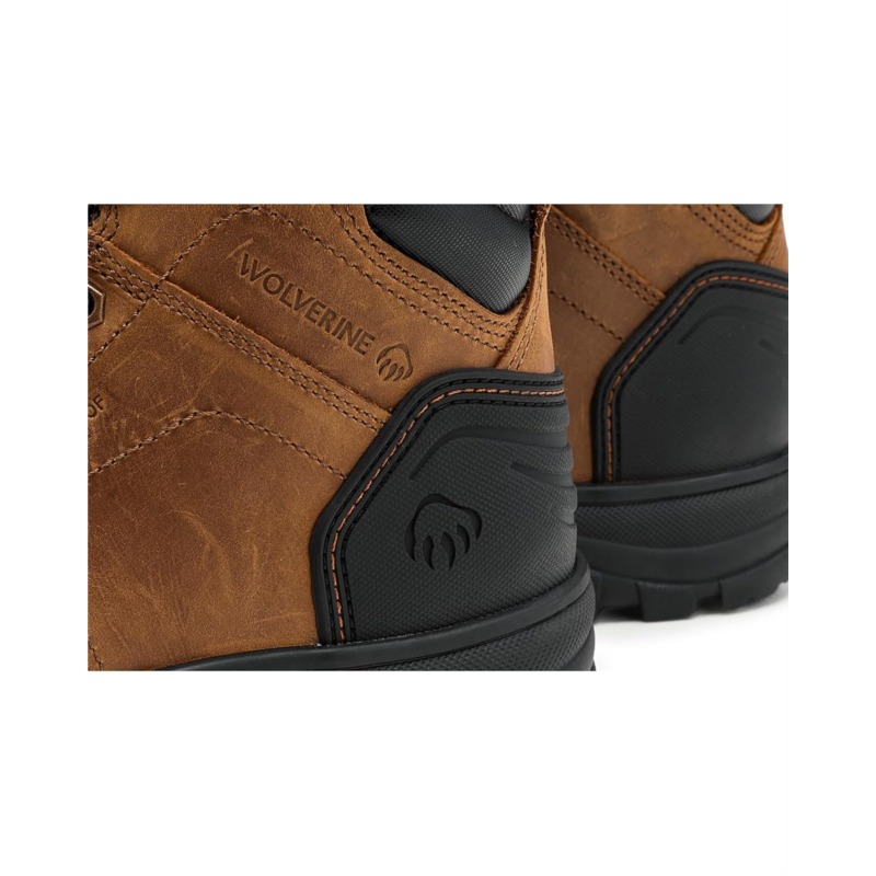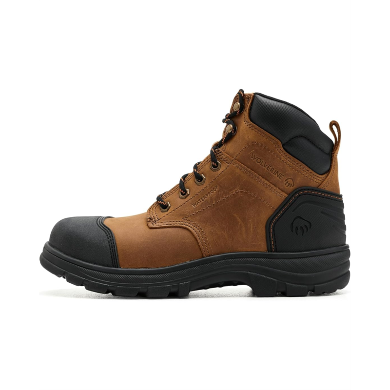 - Move into durability with every step: The Wolverine Carlsbad Cap-Toe 6'' - Crafted for tough jobs and rugged adventures, this boot pairs premium waterproof leather with a TecTuff abrasion-resistant toe and heel rand to handle the harshest elements. The moisture-wicking mesh lining and removable tri-layer, non-fatigue footbed keep you comfortable, while the superlight EnergyBound Max midsole provides responsive cushioning that powers every step. With an ASTM-rated CarbonMax composite toe, this boot delivers top protection in any environment. The rugged rubber outsole and ankle-high design ensure secure traction, making the Carlsbad Cap-Toe 6'' your ultimate work-ready companion.