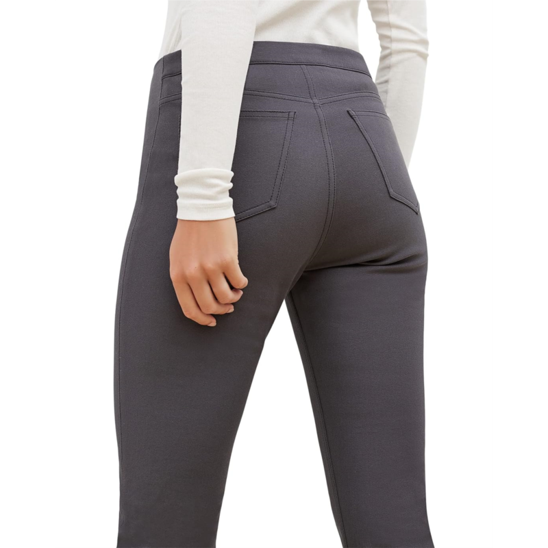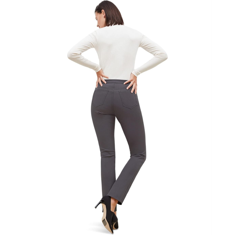 These high-waisted, better-than-denim straight jeans are crafted from a machine-washable Turkish two-way stretch cotton that provides comfort, ease, and excellent recovery (no baggy knees here!). They feature a concealed snap in the hem that allows you to adjust the length, a classic fly-front zipper, and back pockets.