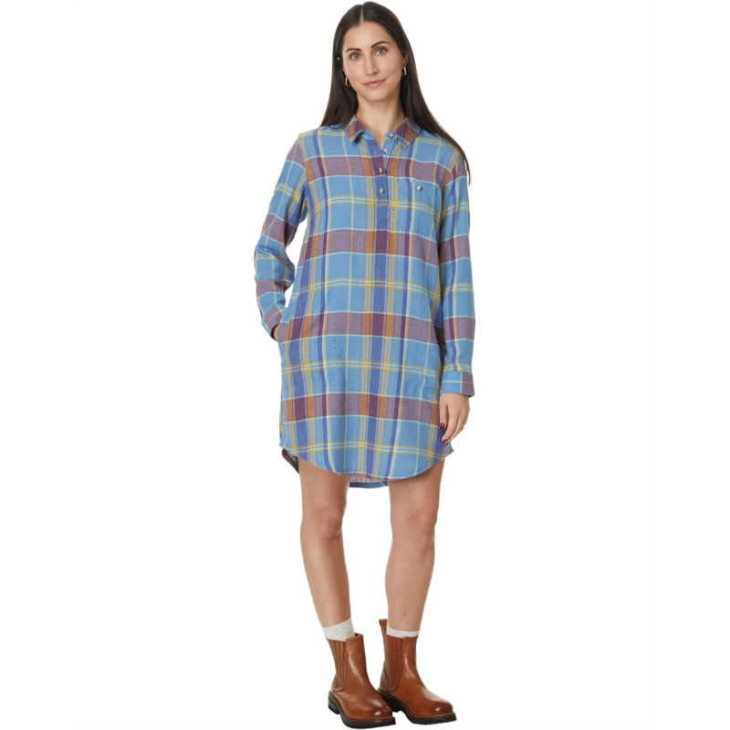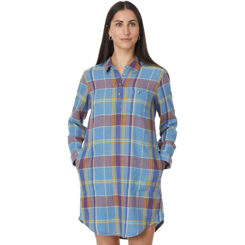 Elevate your everyday look wearing the Toad&Co Re-Form Popover Long Sleeve Dress. Crafted with a collared neckline and button placket, this dress is perfect for any occasion. The long sleeves with buttoned cuffs add a touch of sophistication, while the plaid pattern keeps it casual. Complete with a convenient patch pocket on the left chest and two hand pockets, this dress seamlessly combines style and functionality.
