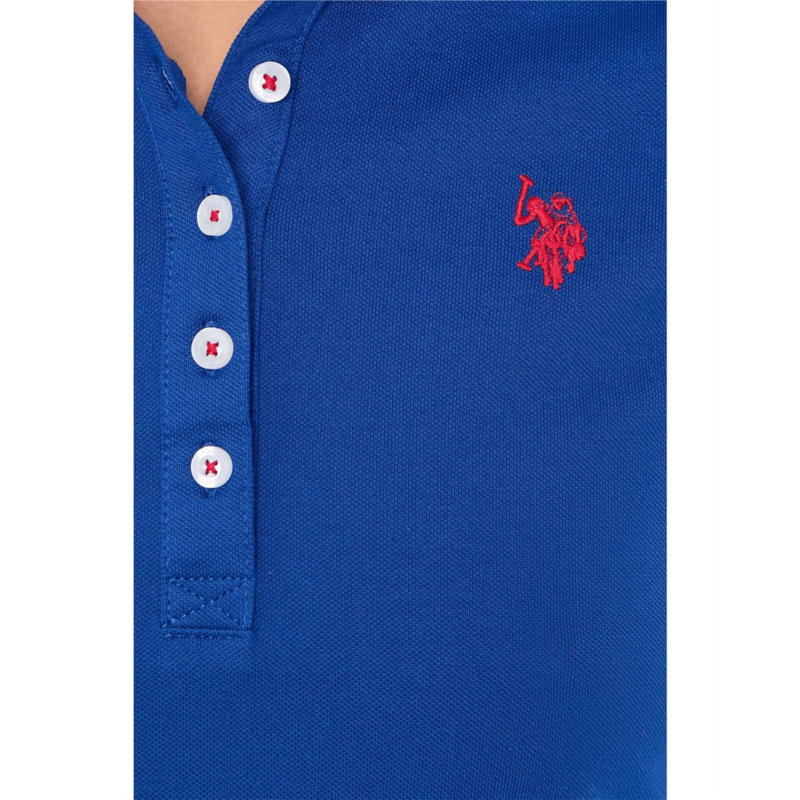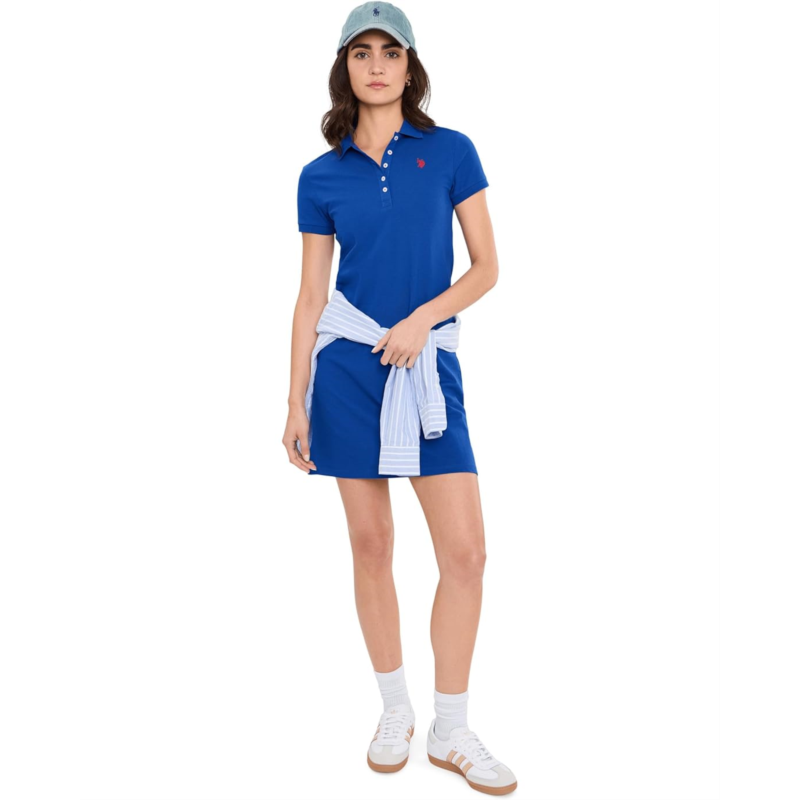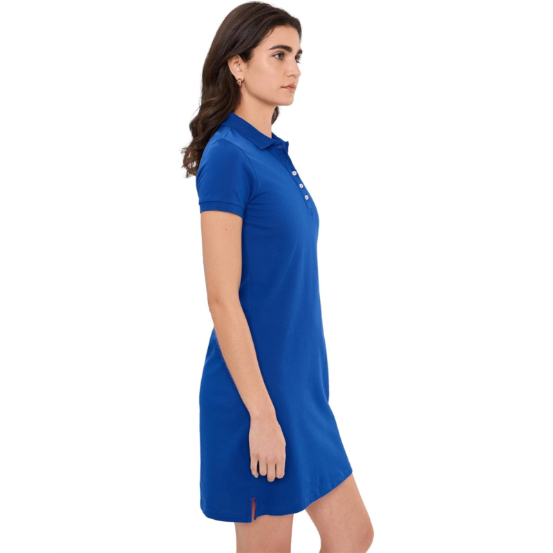 Show off sporty aesthetics and a comfortable style wearing the U.S. POLO ASSN. USPA Classic Polo Dress. The collared dress features a quarter-button closure, short sleeves, embroidered pony at the chest, and an above-the-knee length with side slits.