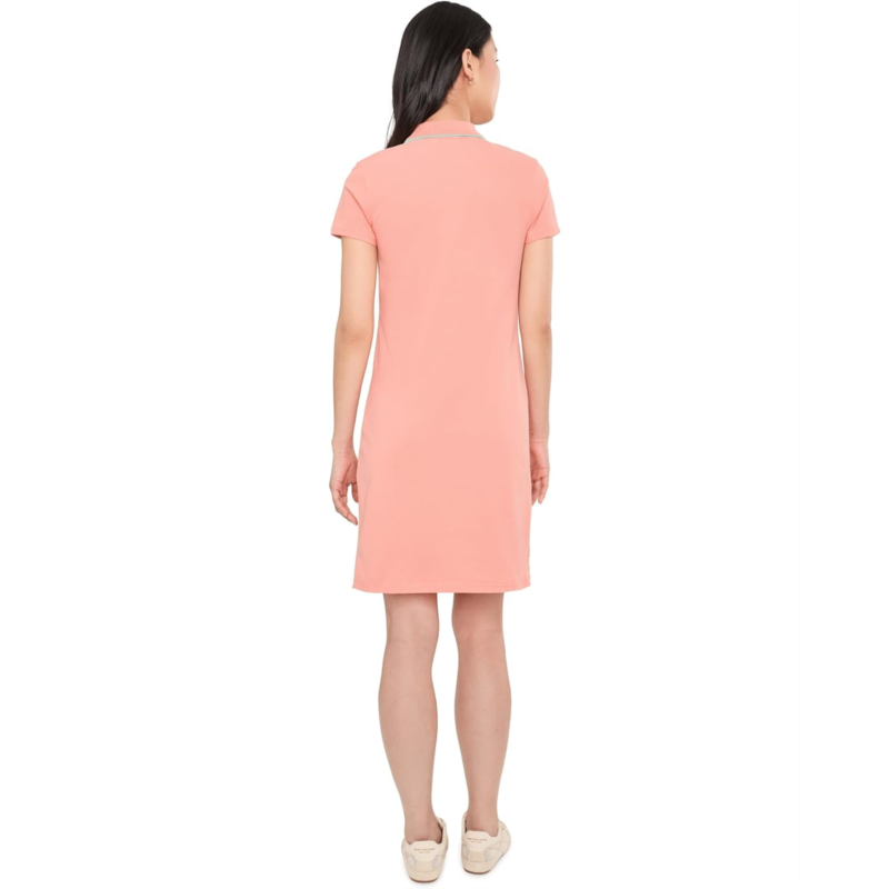 Add a fashionable twist to your warm-weather wardrobe with the U.S. POLO ASSN. Tipped Polo Dress. The pique polo dress comes with pull-on styling and quarter-button placket. The short sleeves come with decorative side-button tabs and the classic tipped pique collar is added for a sporty, crisp look. The straight hem with side vents allow for ease of movement, while the embroidered brand logo detail at the chest adds an authentic touch.
