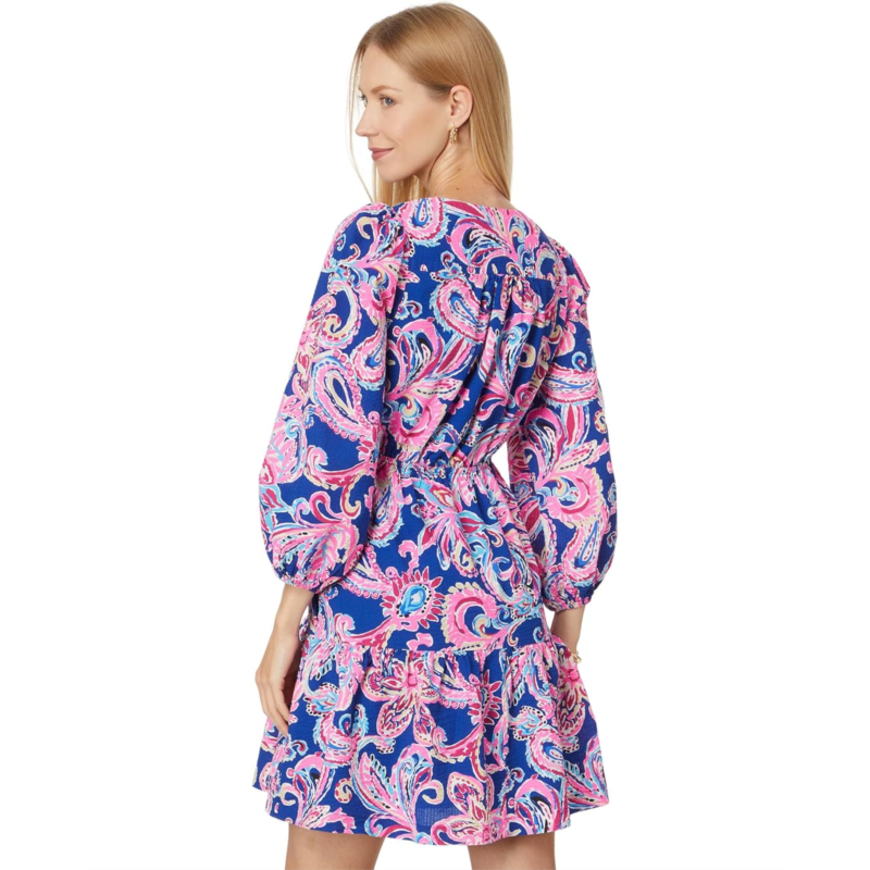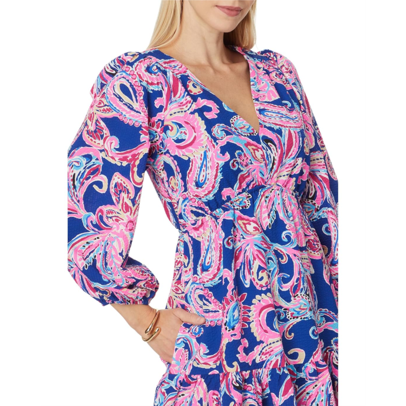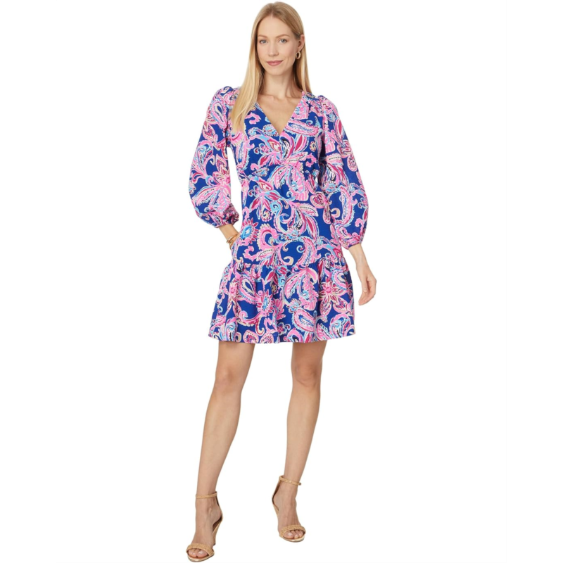 Featuring the allover printed pattern, the Lilly Pulitzer Deacon 3/4 Sleeve V-Neck dress is sure to give you a polished look for your next brunch date. It has an empire waist silhouette and side pockets for added comfort.
