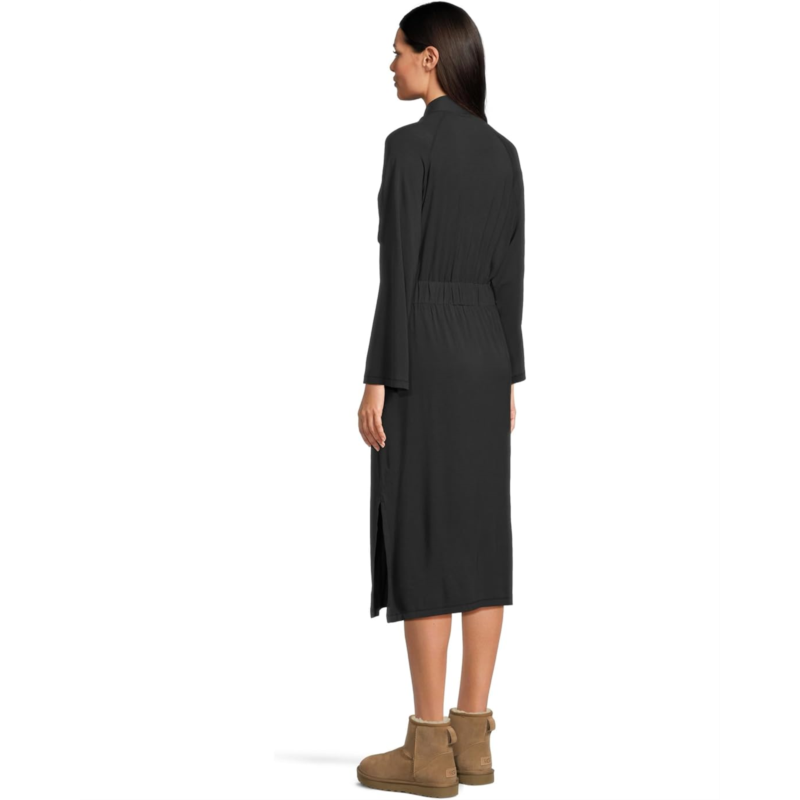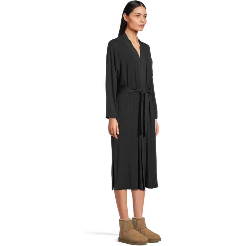 Styled with a fixed waist tie belt with a cinched back, the UGG Myra Robe is designed to bring you superior comfort and style. Made from a viscose and elastane blend for a drapey fit, this midi-length robe also comes with a cotton hanger loop. It is designed with Bracelet length sleeves, side slits, a V-neckline, and a straight hem. Comfortable and stylish, this robe features the UGG logo woven flag label clamped on the wearer''s left pocket.