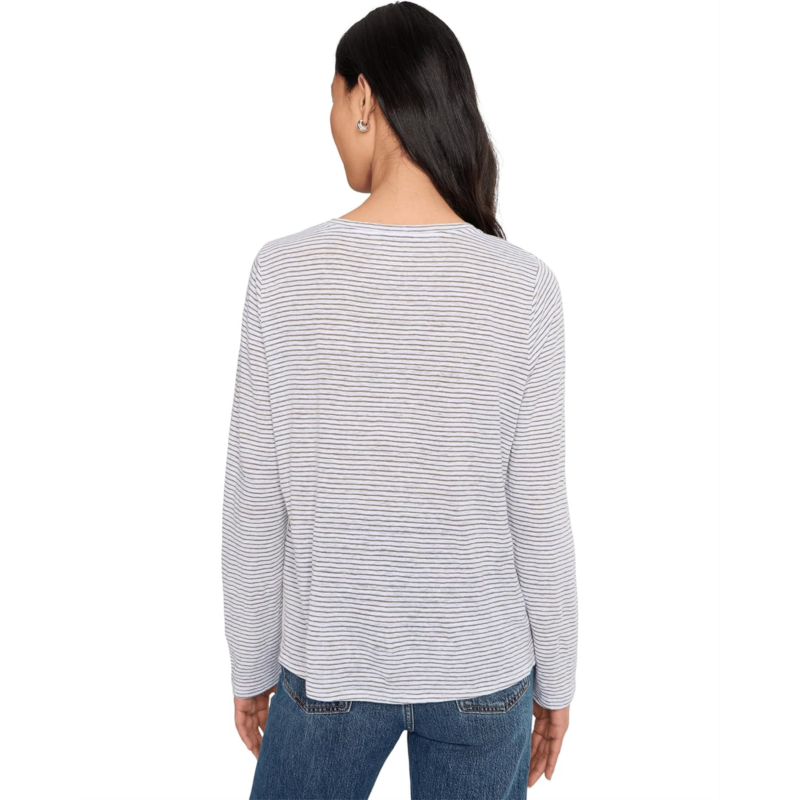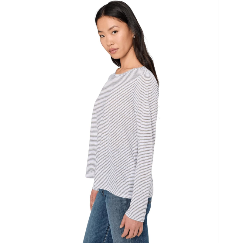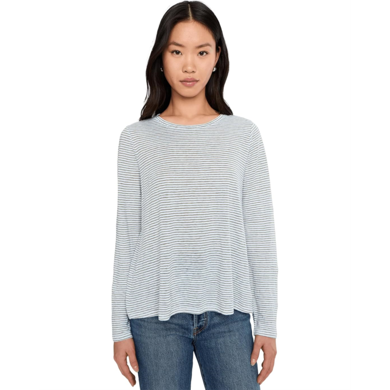 [US] Eileen Fisher Striped Organic Linen Jersey Crew Neck Long Sleeve Tee