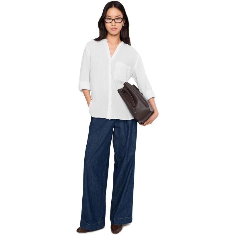 [US] Eileen Fisher Organic Cotton Ripple Mandarin Collar Shirt