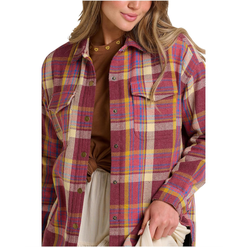 Look astonishing and ravishing wearing the Toad&Co Conifer Shirt Jacket. It features drop shoulder seams, long sleeves with two snap buttoned cuffs, snap buttoned front closure, jersey knit lining, and shirttail hemline.
