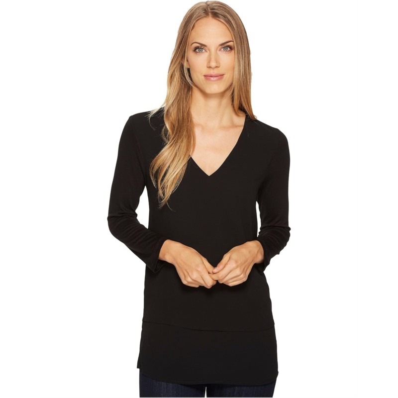 V-neck top crafted from a Georgette fabrication at front, with matte jersey at back.